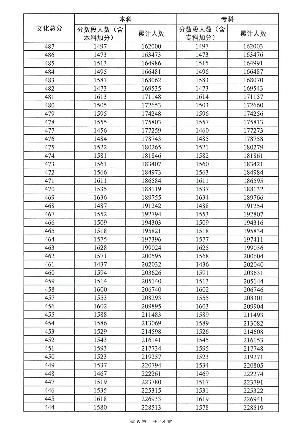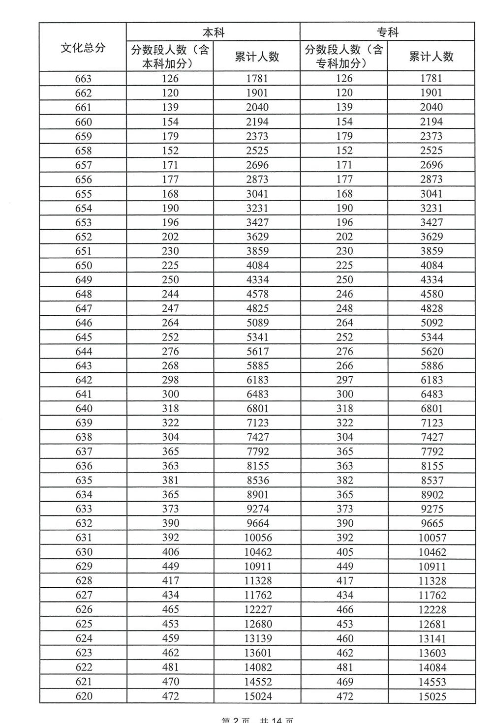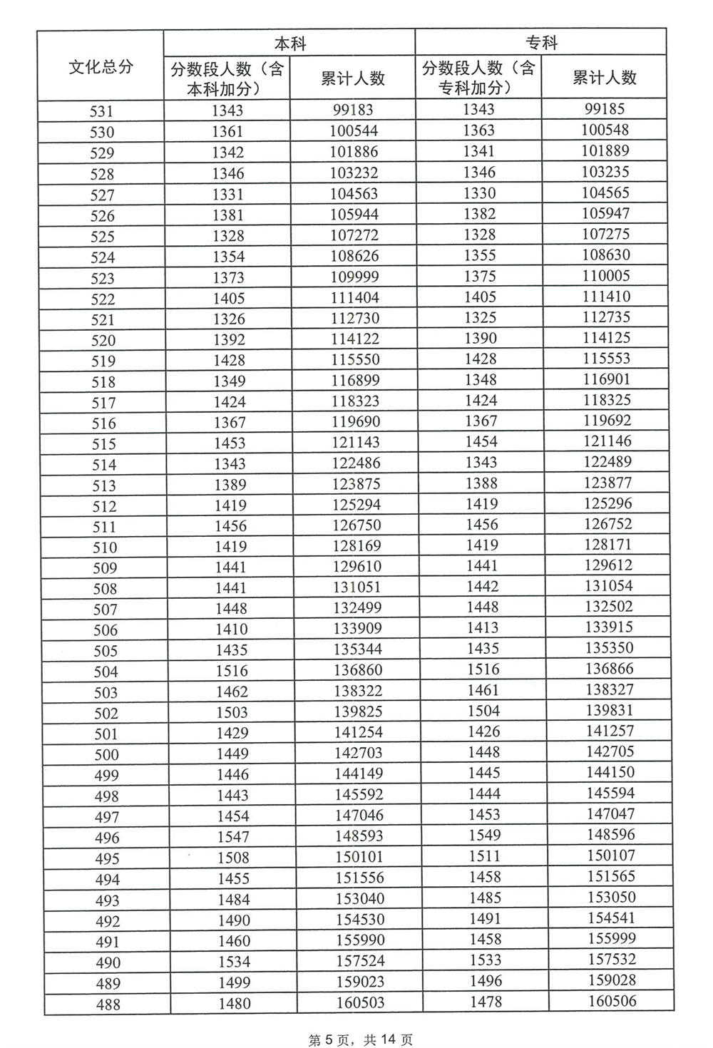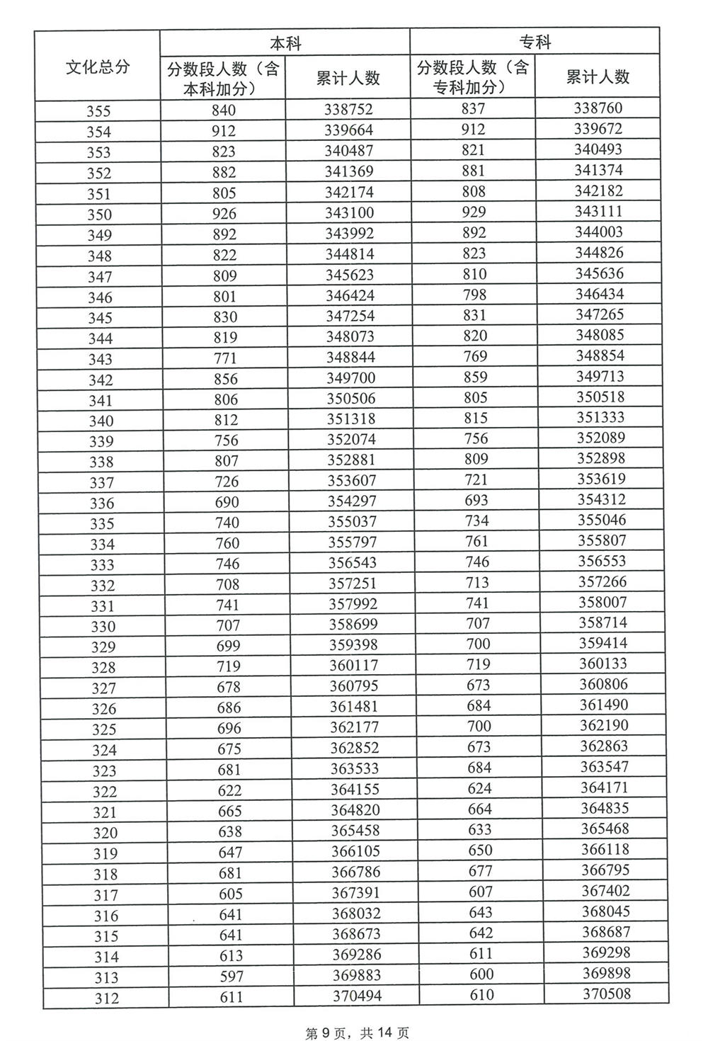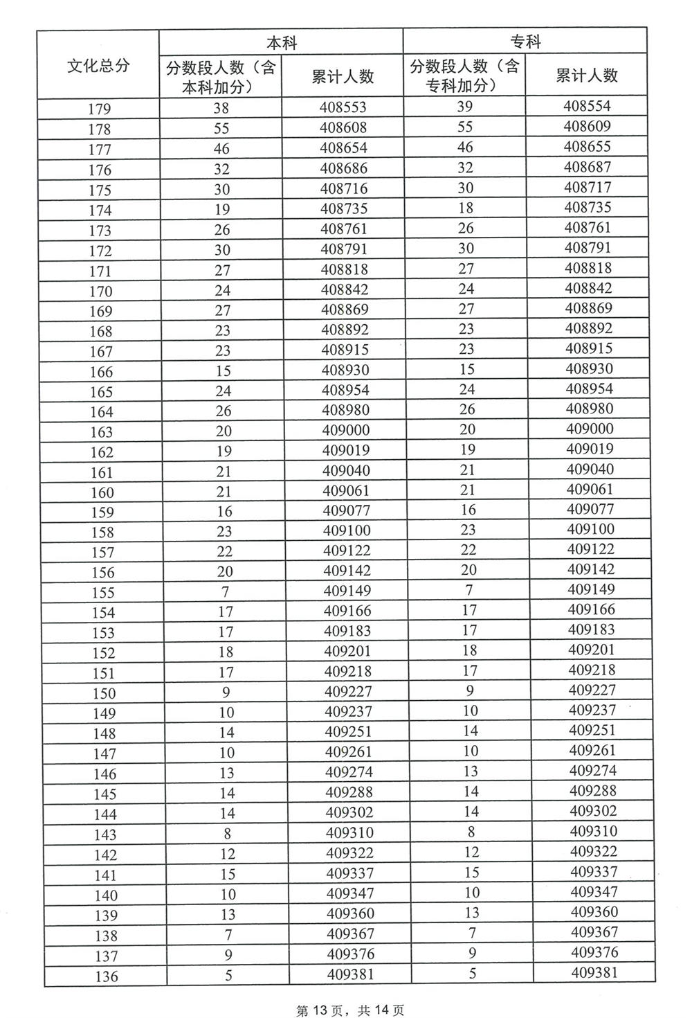 广东省2023年高考普通类(物理)分数段统计表