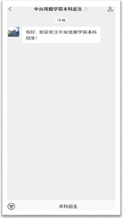 手机打开微信搜索“中央戏剧学院本科招生”微信公众号并关注,点击“本科招生”进入注册报名页面,输入手机号,点击发送验证码后填写,设置密码并牢记,点击注册。