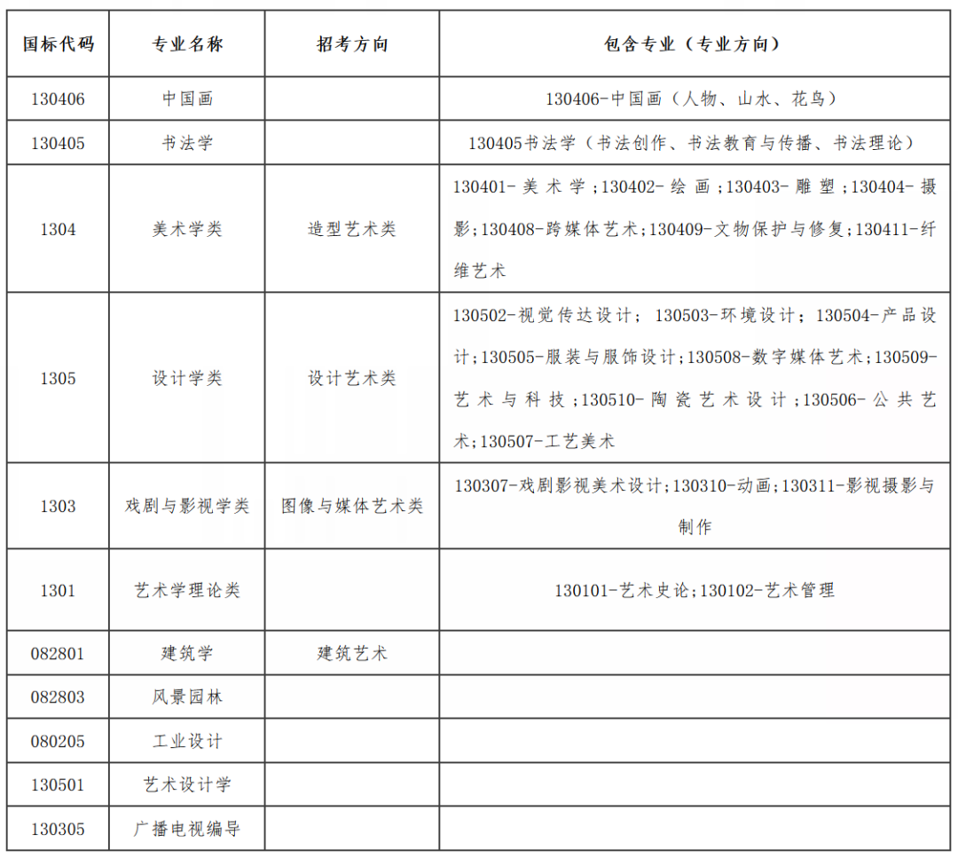 中国美术学院专业教学为基础和专业「两段式」教学模式,各招考专业大类包含专业见下表: