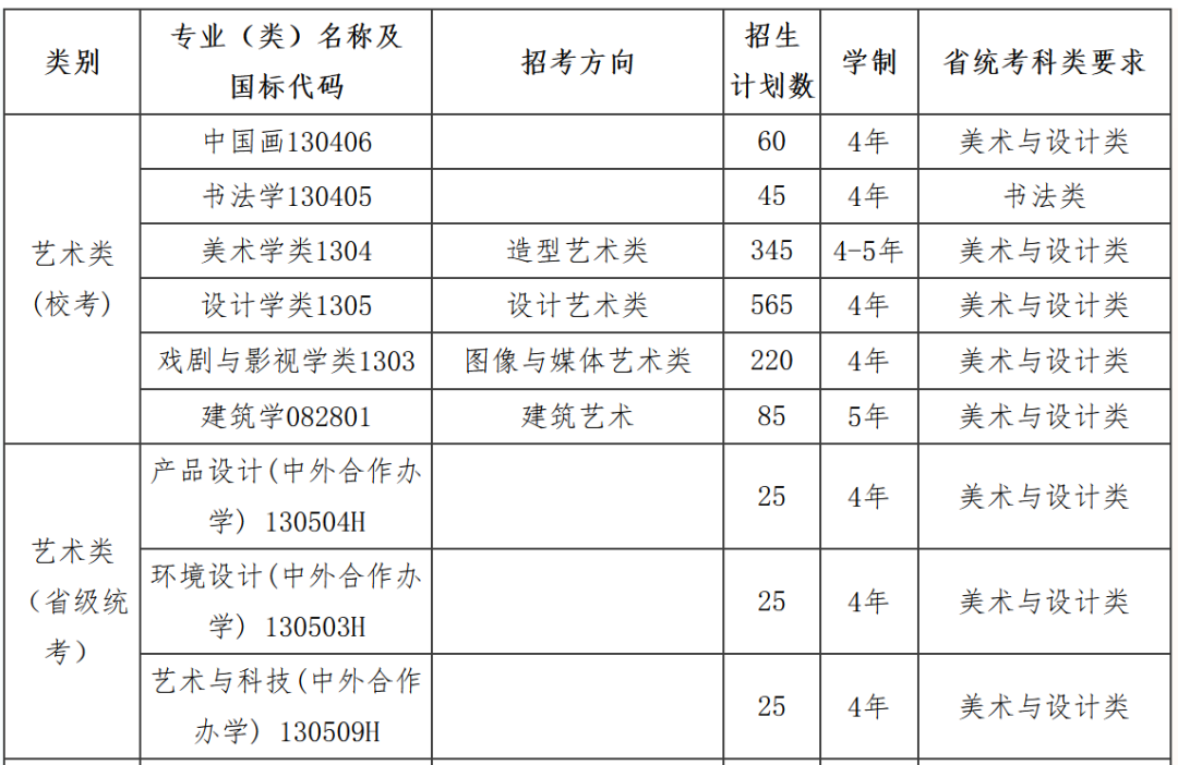 5.艺术类校考、艺术类省级统考招生专业面向各专业对应科类(本科)省级统考合格生源。