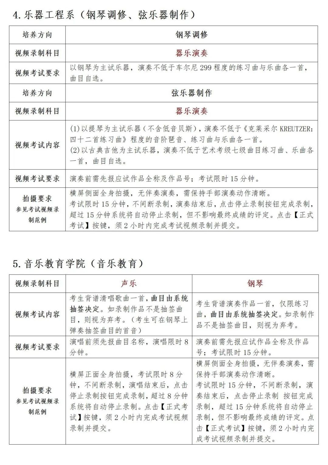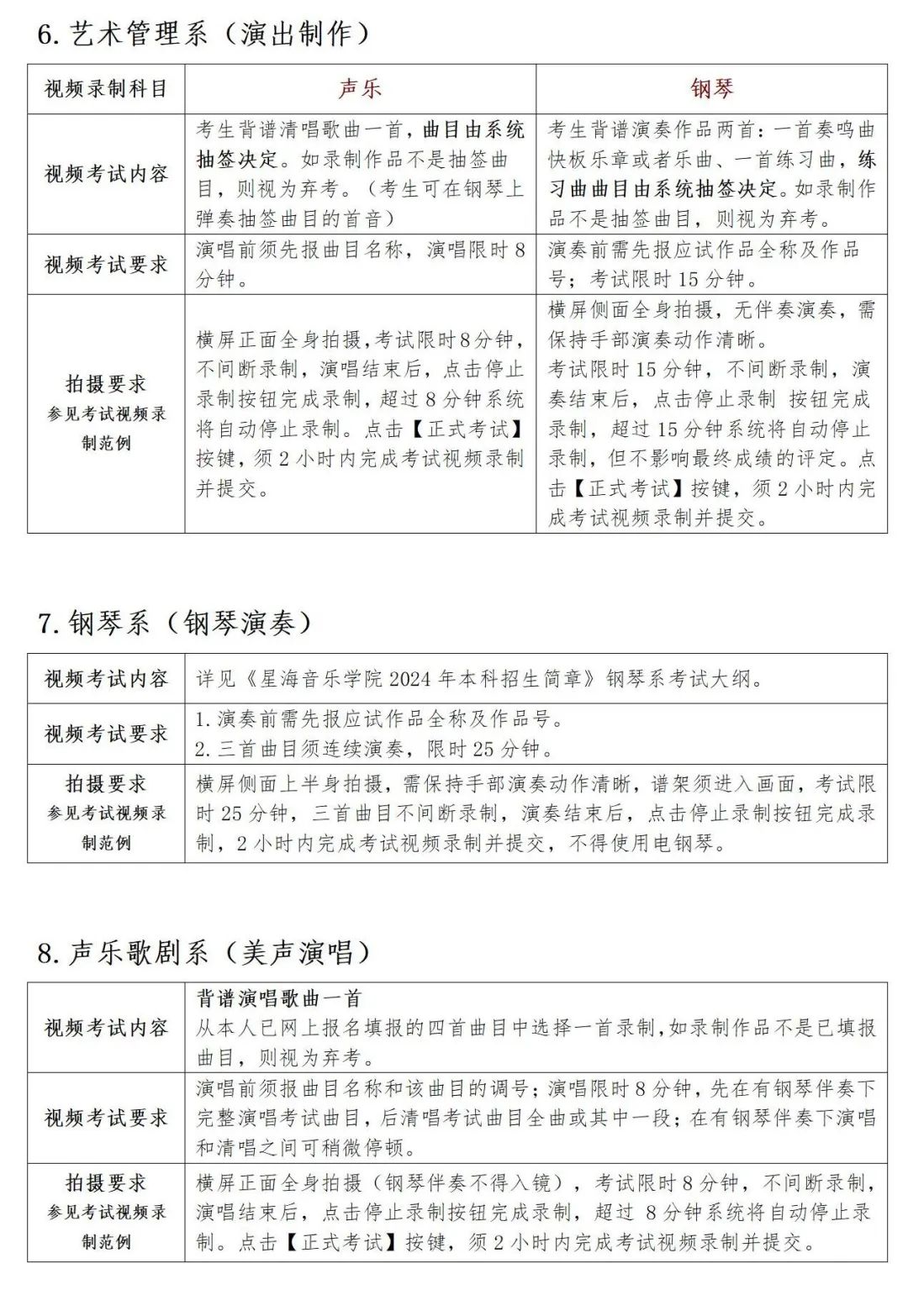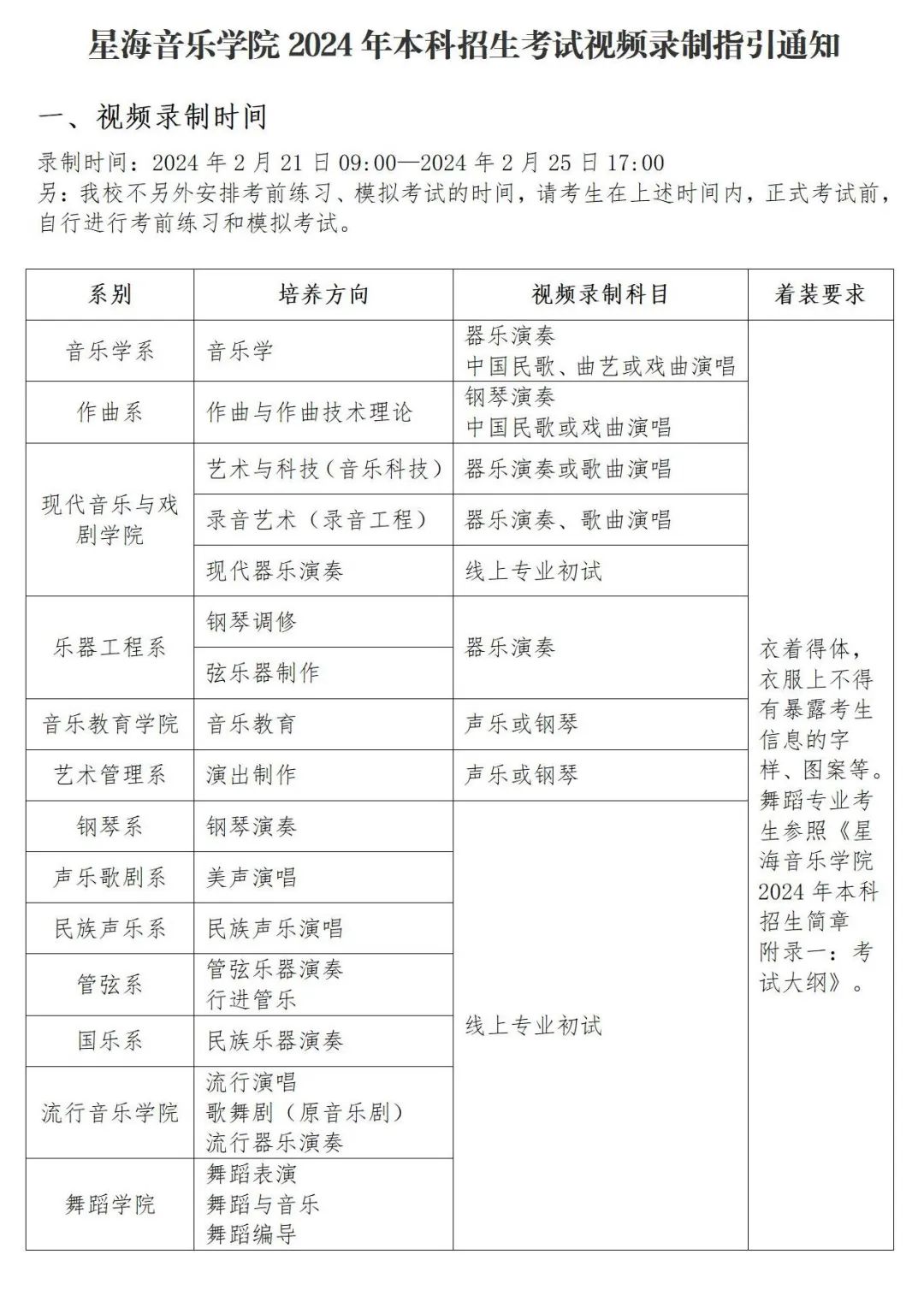 星海音乐学院2024年本科招生考试视频录制指引通知