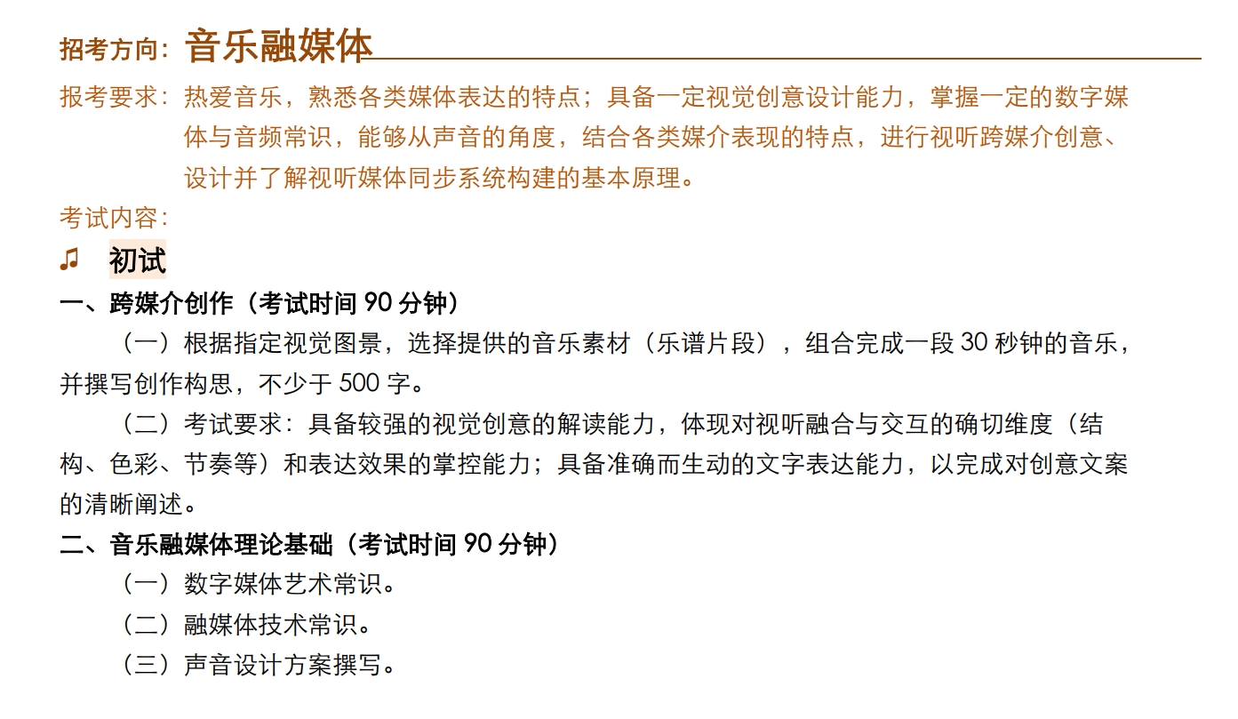 1. 调整音乐融媒体招考方向的省统考子科类对照为美术与设计类;其考试内容也做出相应调整,具体内容请见附件1。