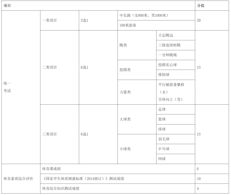答:根据《广州市教育局关于印发广州市初中学业水平考试体育与健康科目考试实施意见的通知》(穗教规字〔2023〕2号)规定,2024—2026年体育考试总分70分,由统一考试(50分)和体育素质综合评价(20分)组成。统一考试由三类考试项目组成,普通考生须参加三项考试,模式为一类项目“二选一”+二类项目“六选一”+三类项目“六选一”。