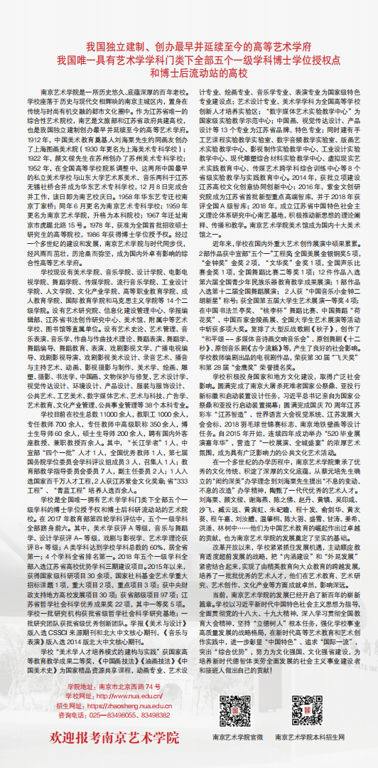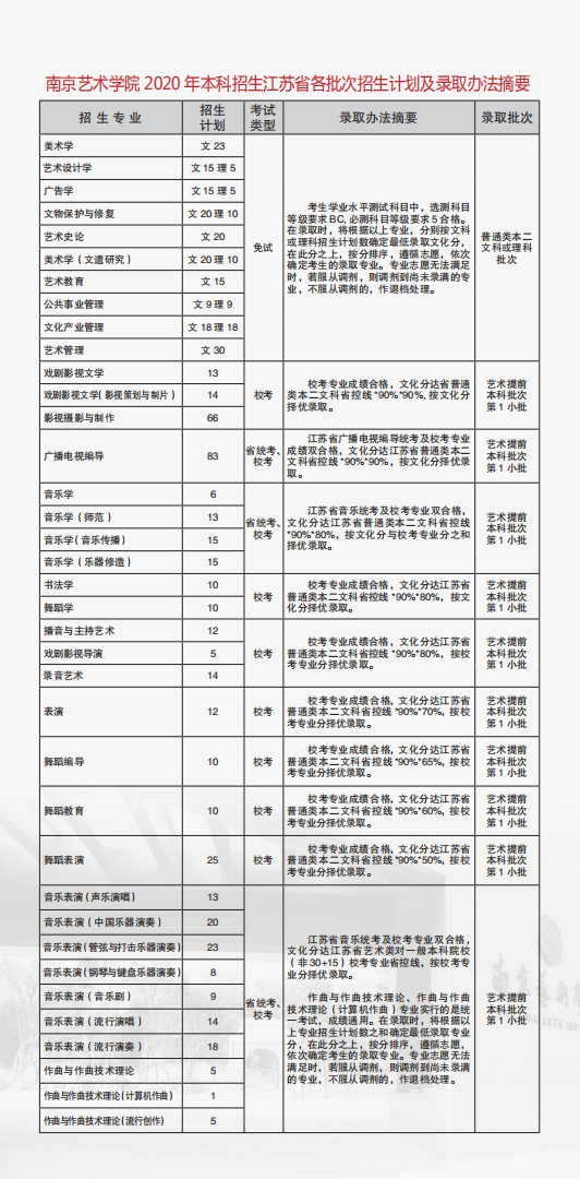 南京艺术学院2020年本科招生江苏省考生报考指南
