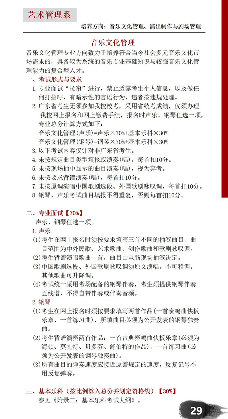 星海音乐学院2021年艺术管理系考试内容