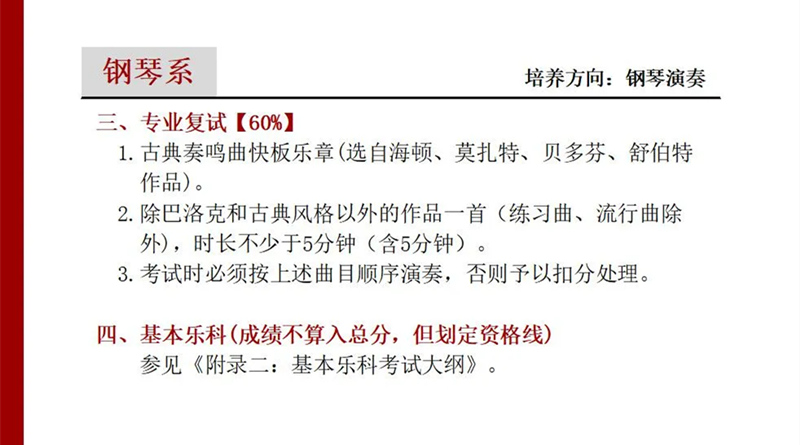 星海音乐学院2021年钢琴系考试内容