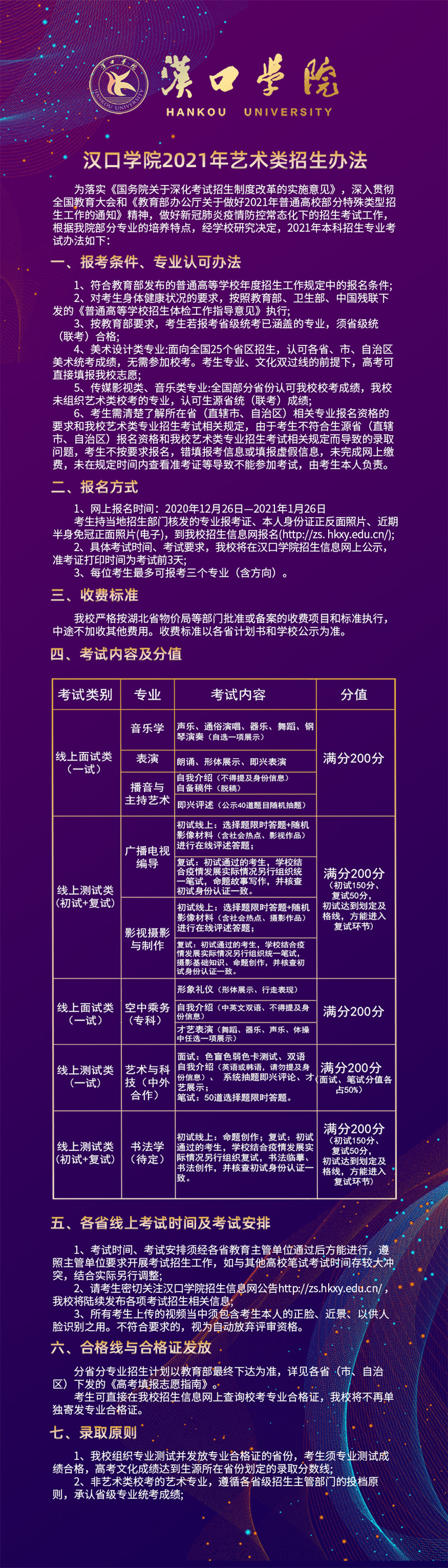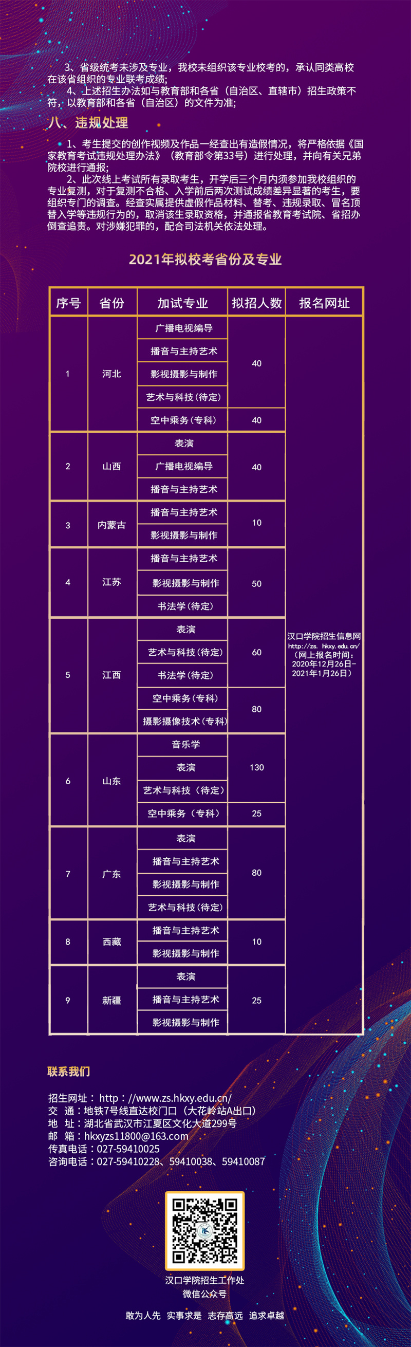 汉口学院2021年艺术类招生简章