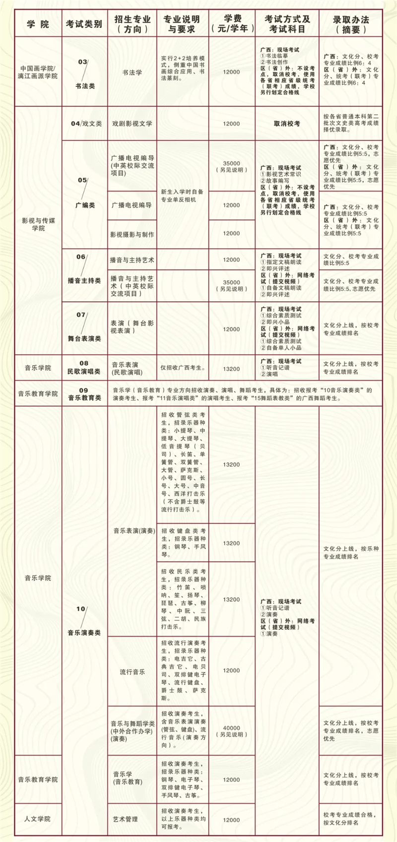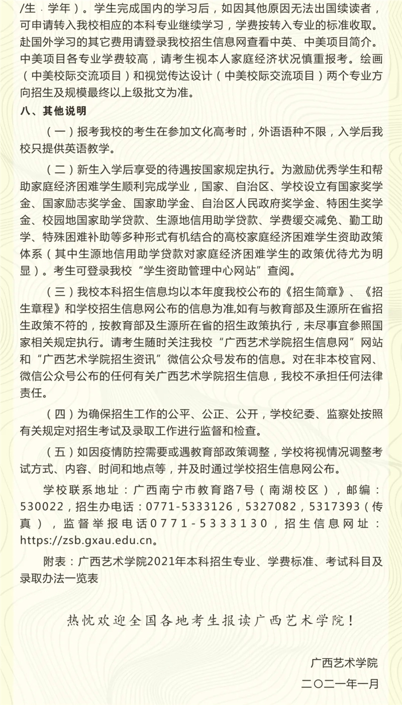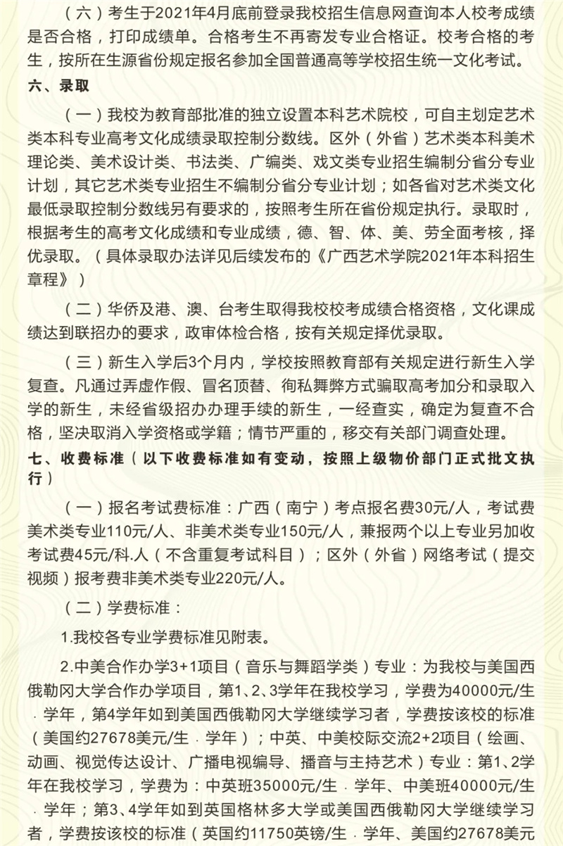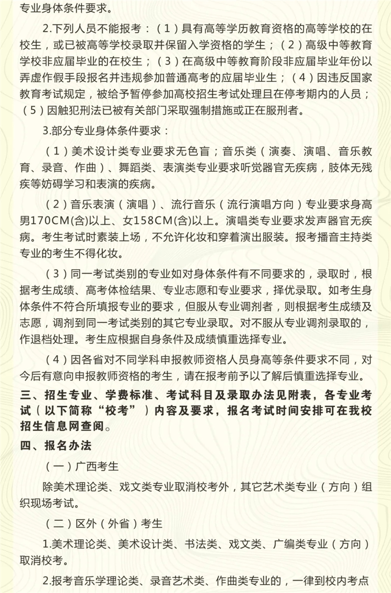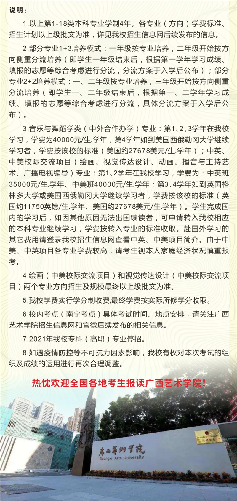 广西艺术学院关于2021年艺术类本科专业招生考试办法的公告2020年12月14日