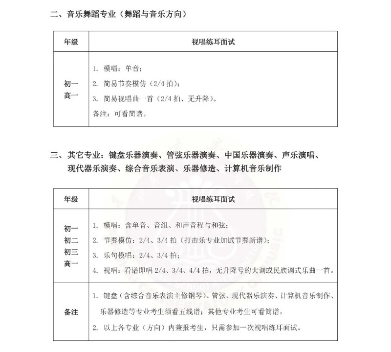 西安音乐学院2026年本科招生专业考试第一阶