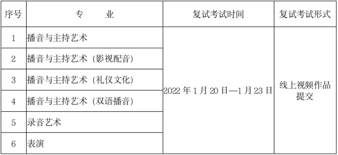 1.复试线上视频作品提交具体考试要求,详见我校本科招生网后续发布的考试须知等相关公告。