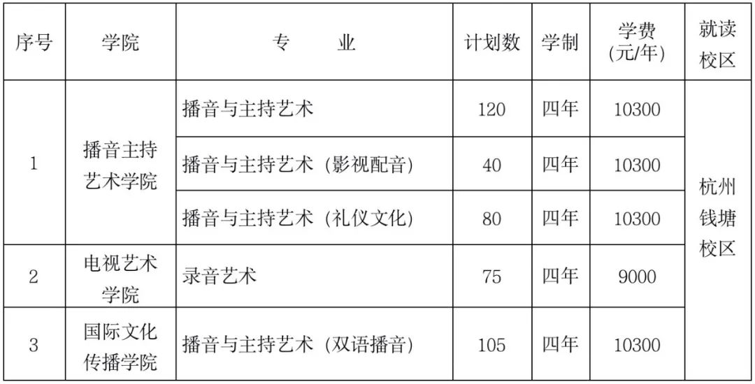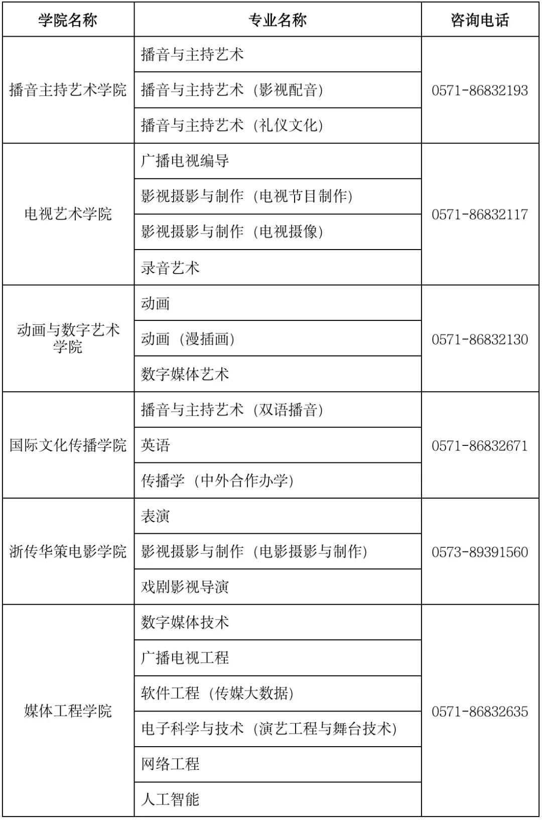 【注】:以上广电艺术类本科专业(方向)面向全国招生,考生按各省考试院(招生办)规定参加我校组织的考试。