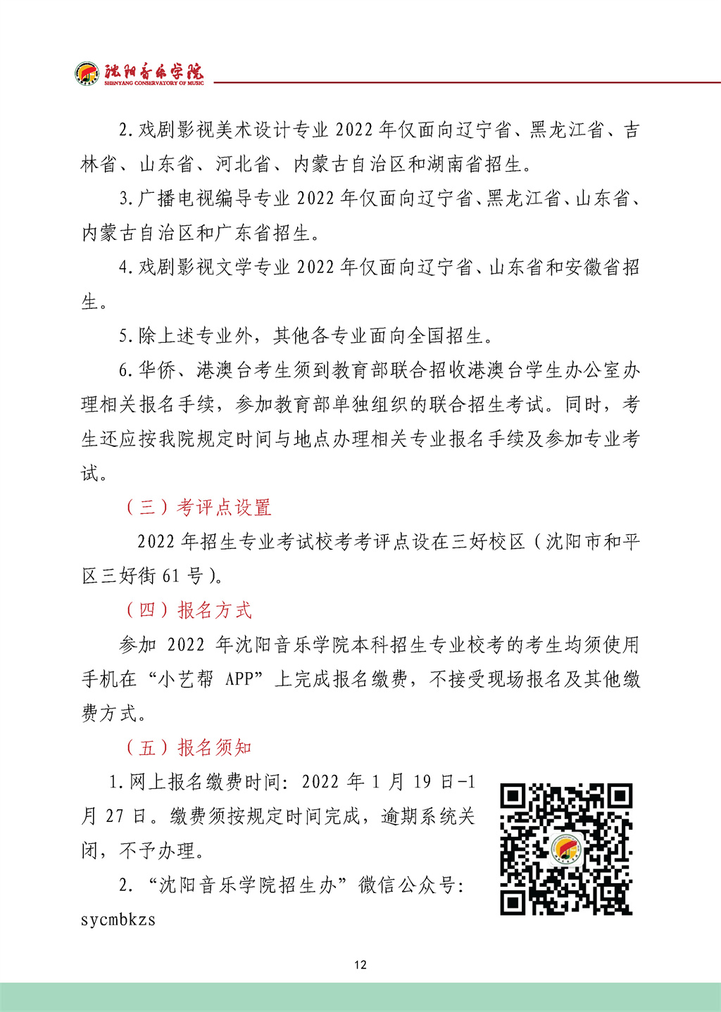 沈阳音乐学院2022年招生简章,网上报名缴费时间:2022 年1 月19 日-1月27 日