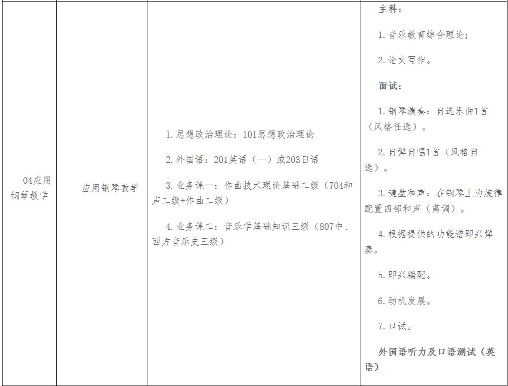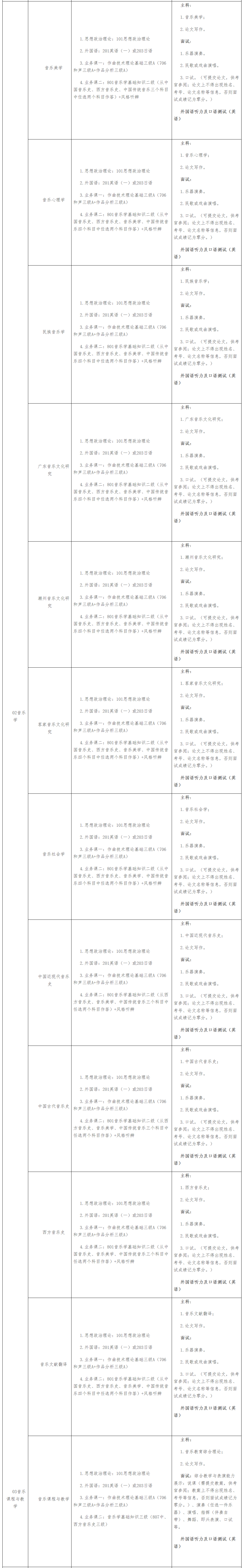注:1.初试科目中的和声、作品分析、中国音乐史、西方音乐史等专业基础课程,其考试内容按不同专业方向的难易程度分级确定考试标准。
