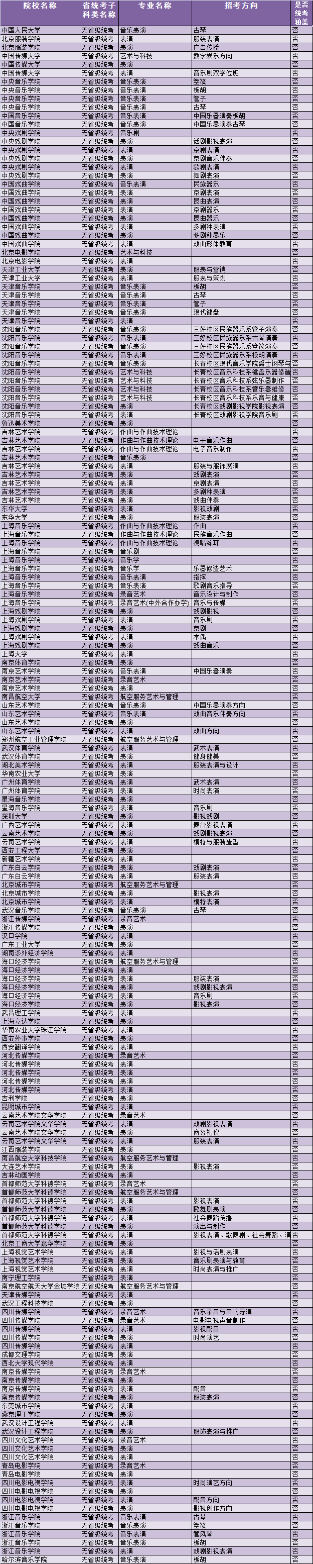 2023年广东音乐生无需统考可考的音乐相关校考院校专业一览表