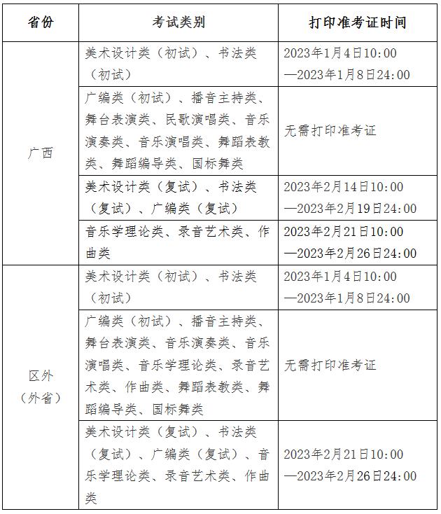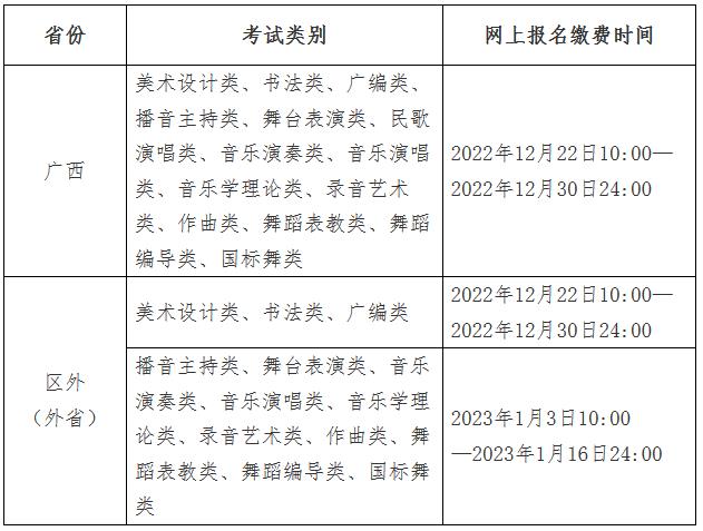 广西艺术学院2023年艺术类本科专业招生考试(以下简称“校考”)实行网上报名、缴费、打印准考证,现将考生有关事项通知如下: