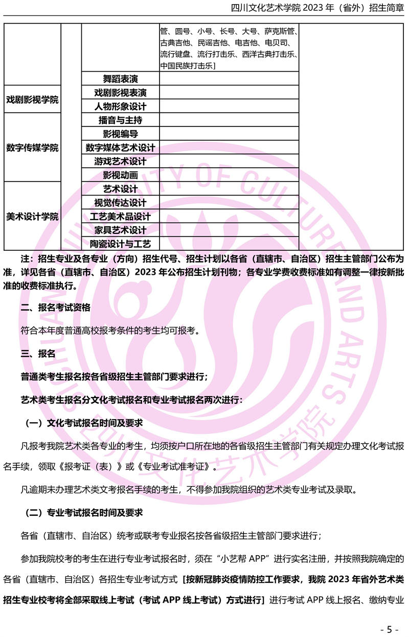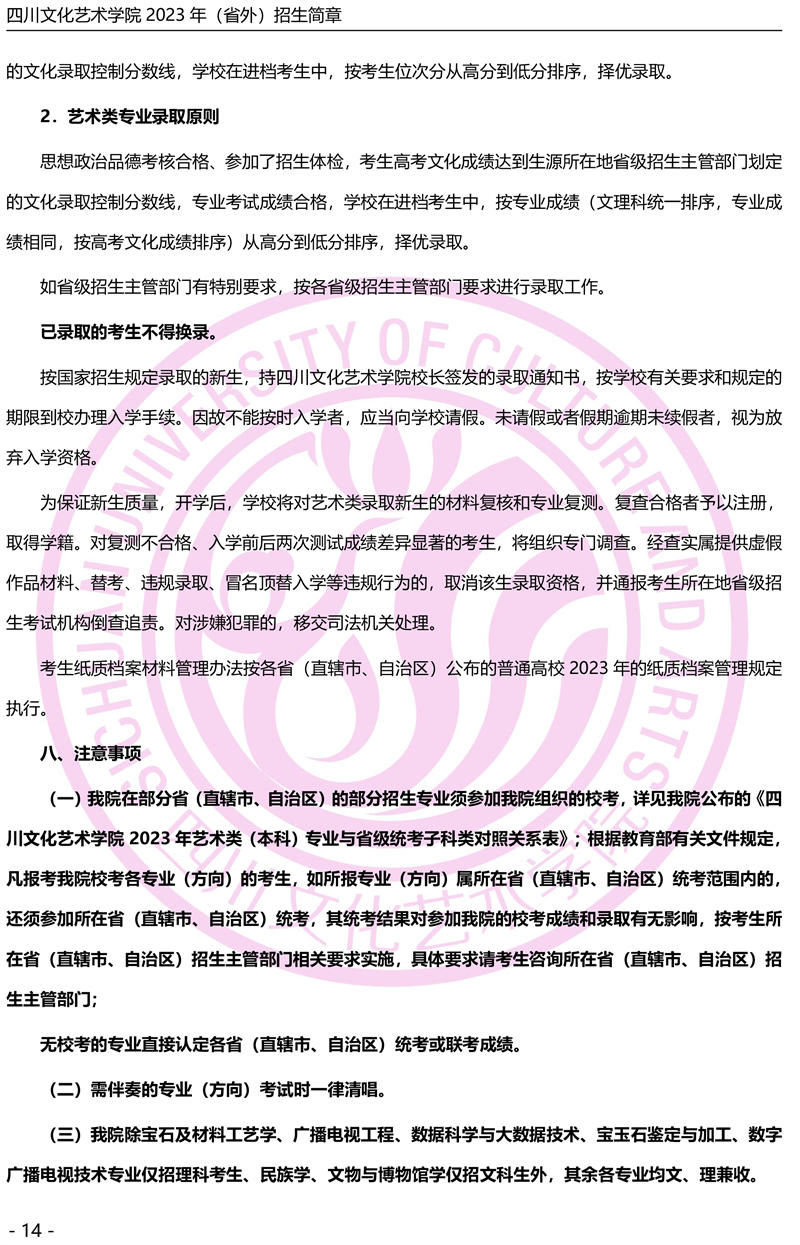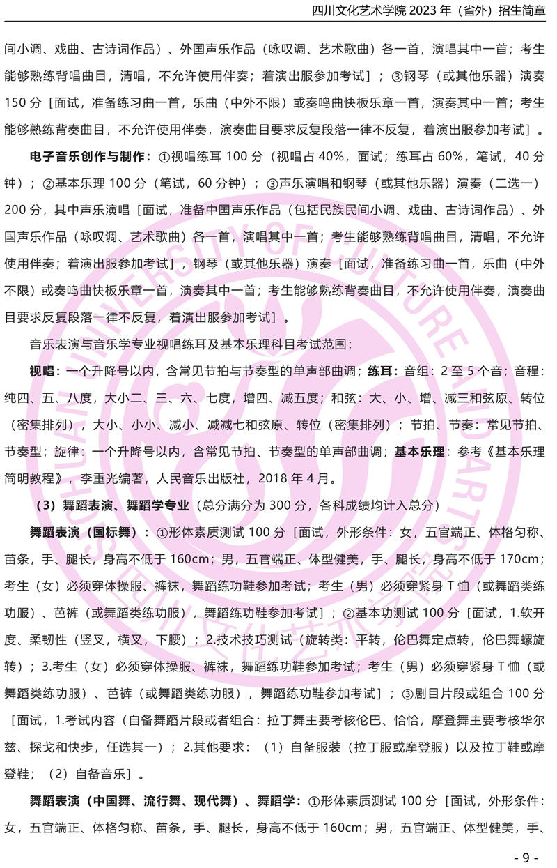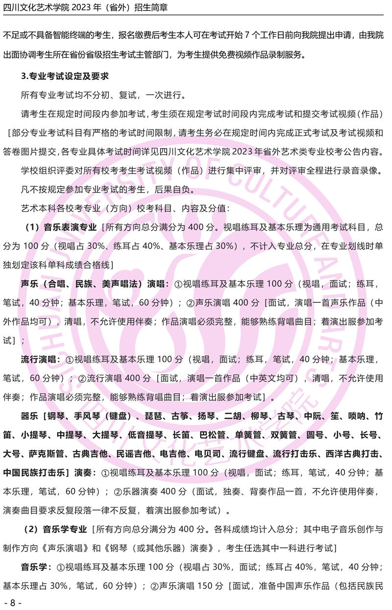 四川音乐学院2018年本科招生简章(非四川考