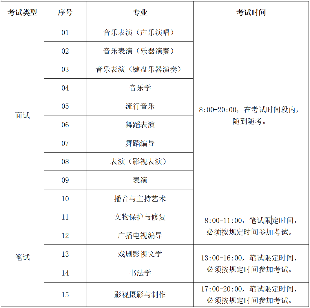 考试全部采用小艺帮APP“网络录制视频考试”的线上考试方式进行,仅一试,不设线下考试。考试报名方式均为网上报考,考生可单报一个或兼报多个专业,具体报名考试方式及时间安排如下: