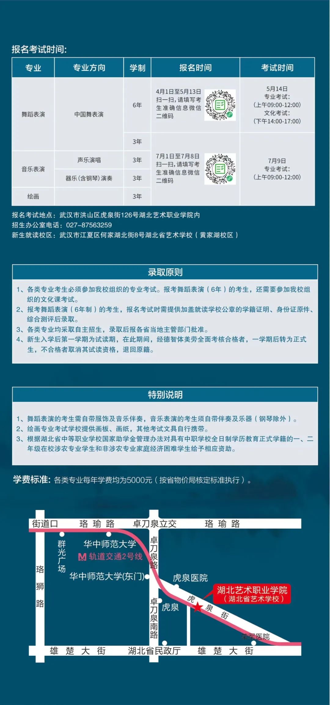 湖北省艺术学校,面向湖北、河南、广东、浙江招生。师资力量雄厚、教学设施完善,是一所省会城市公办学校,非常受大家欢迎的学校,如果艺术生同学们正好在考虑寻找艺术学校或者艺术类附属学校不知道该选择哪所学校的话,可以报考一下湖北省艺术学校。