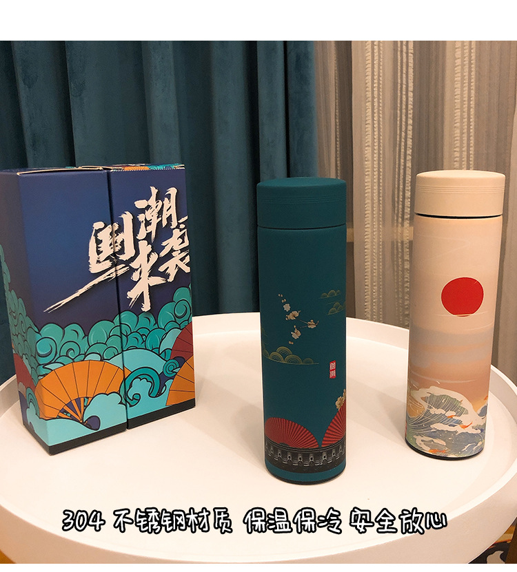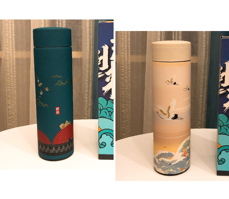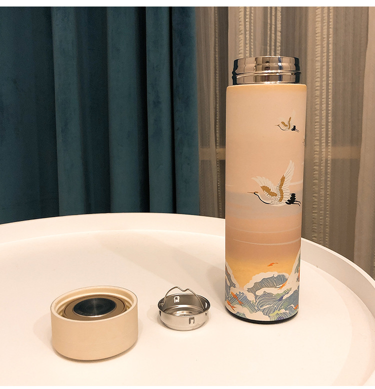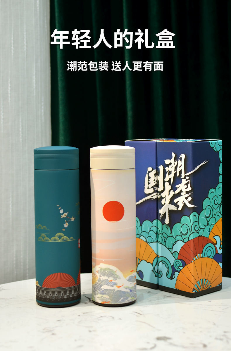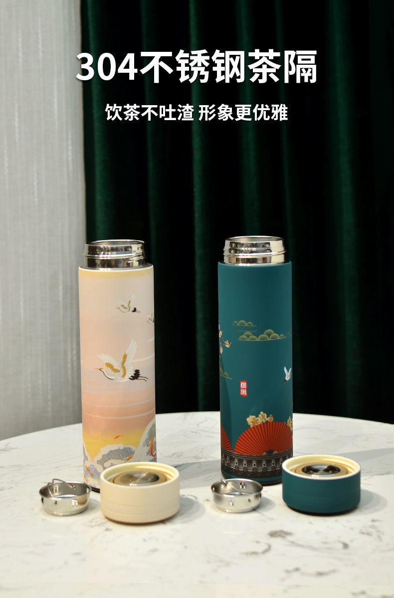 中国风国潮直身商务保温杯高档过滤带茶漏不锈钢杯子密封防漏水杯