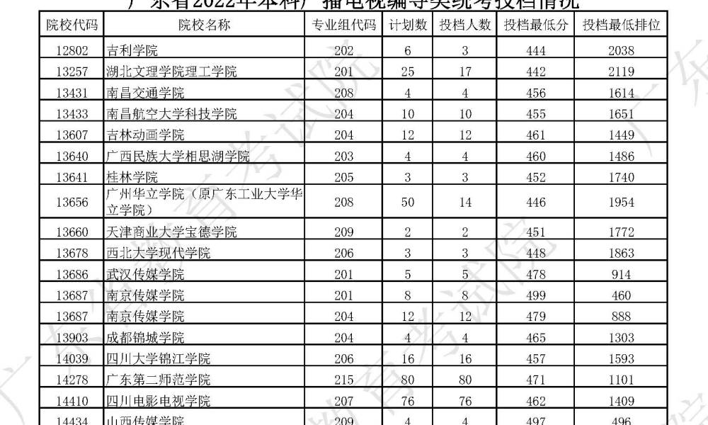 来源:广东省广播电视编导类统考投档情况 | 作者:广东省2022年编导投档情况 | 发布时间: 2023-06-25 | 33744 次浏览 | 分享到: