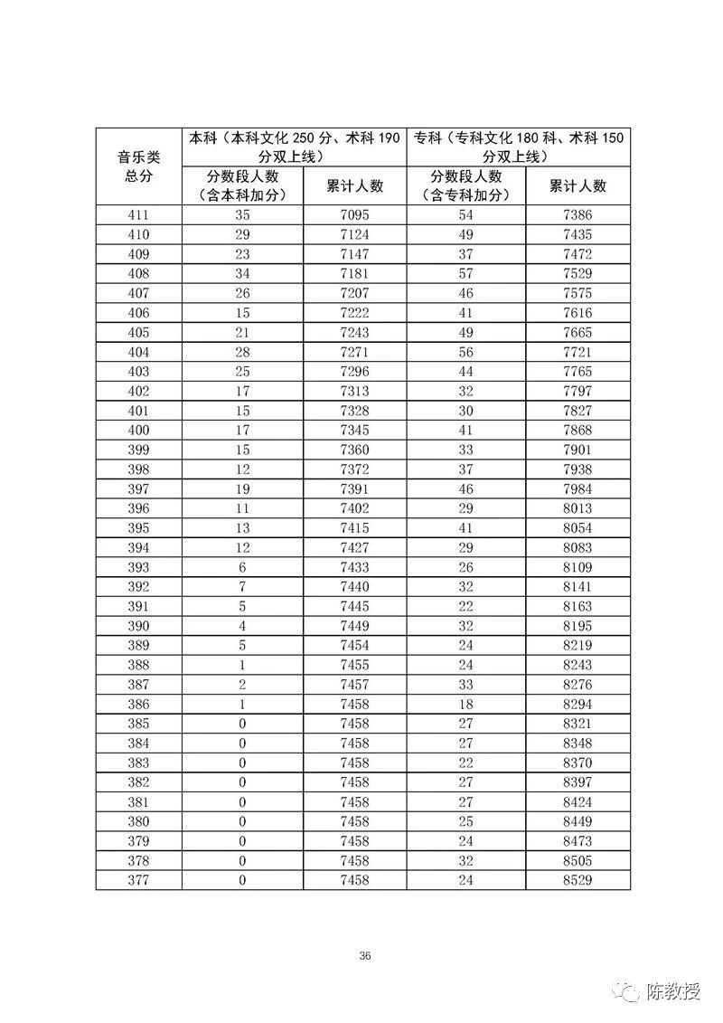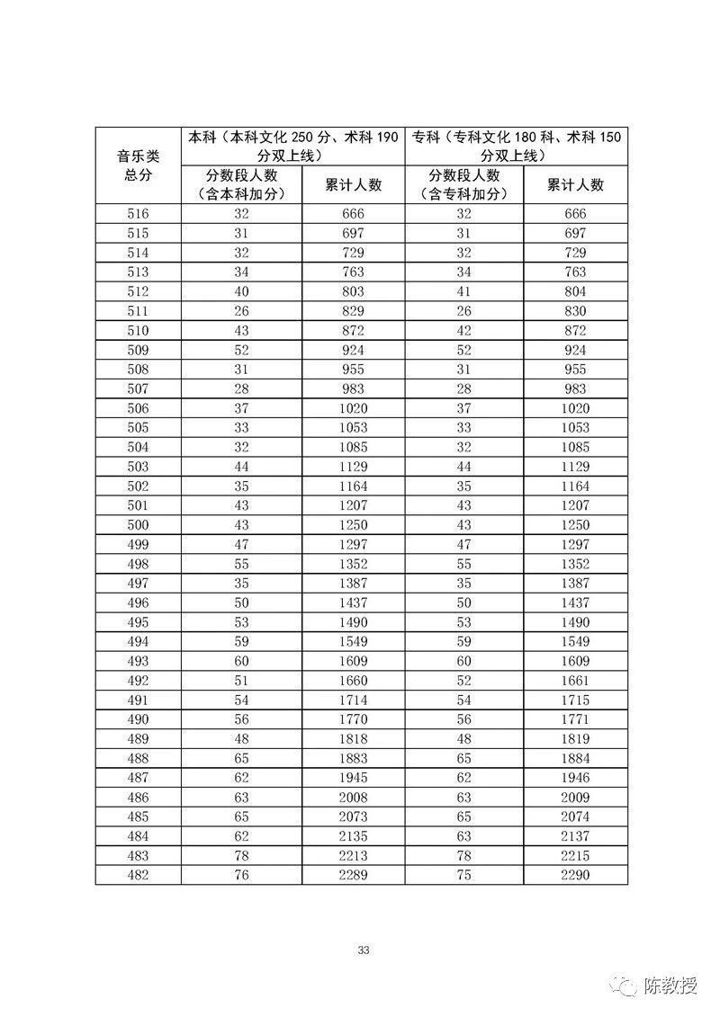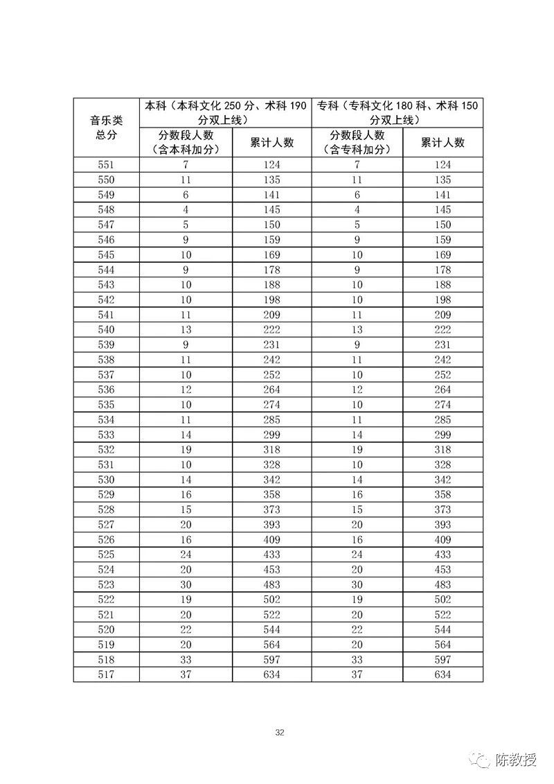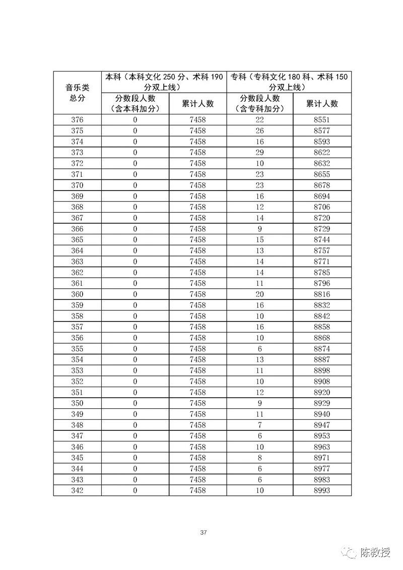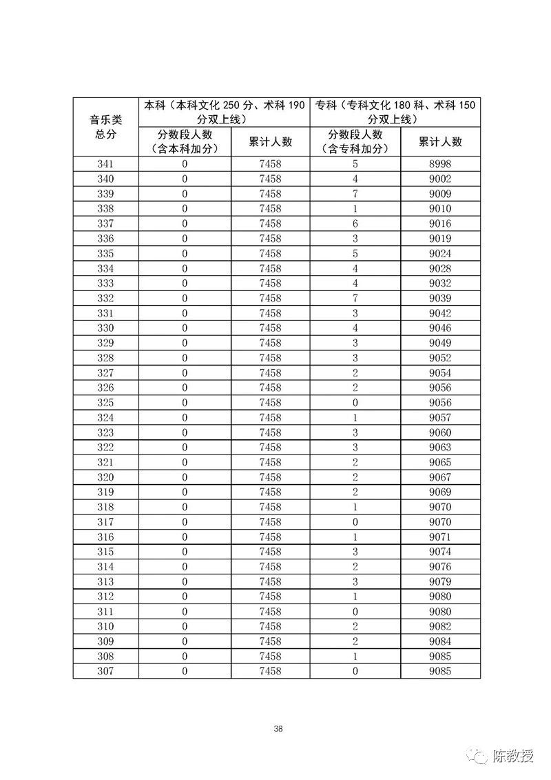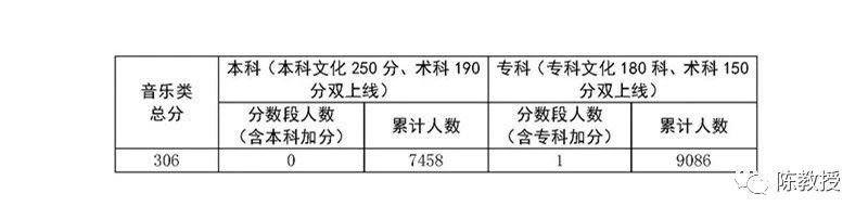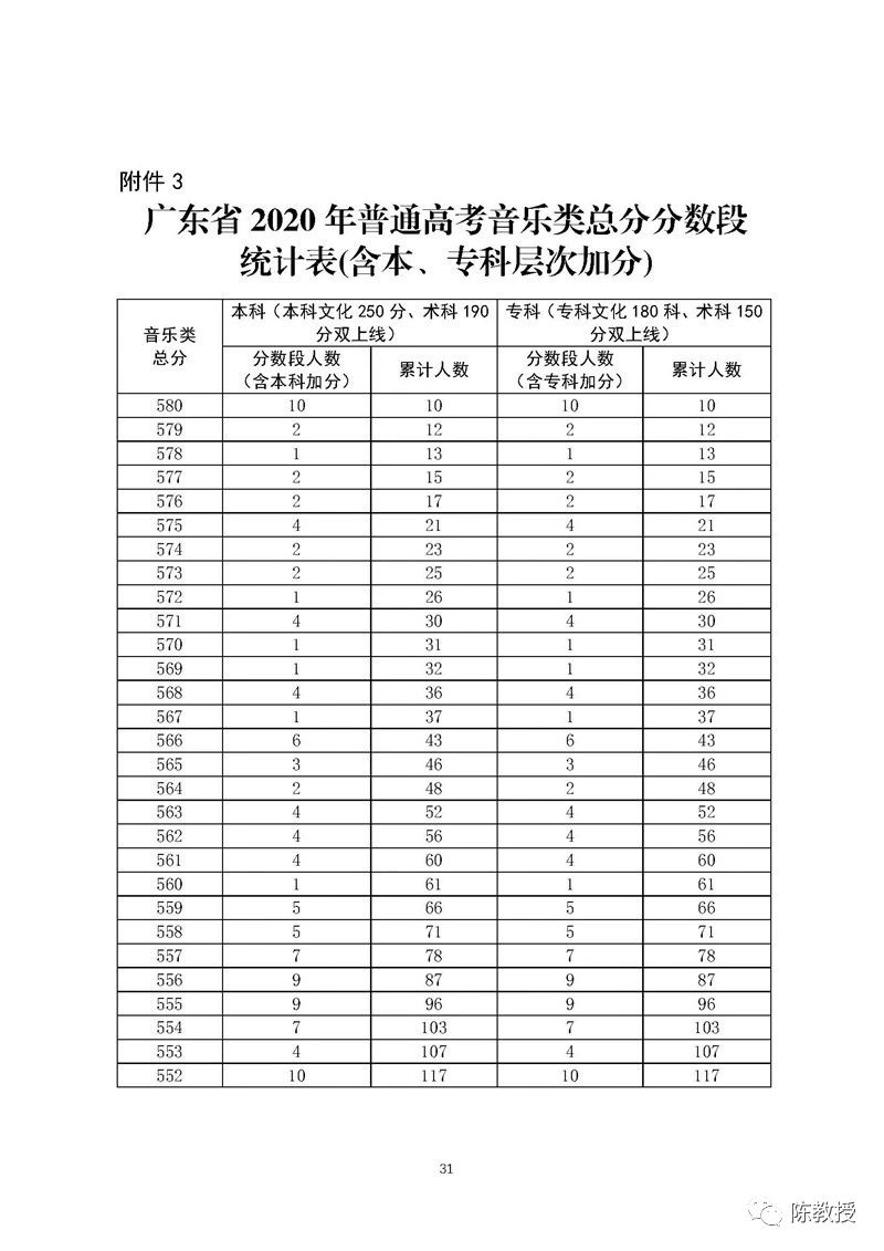 广东省2020年普通高考音乐类总分分数段 统计表(含本、专科层次加分)