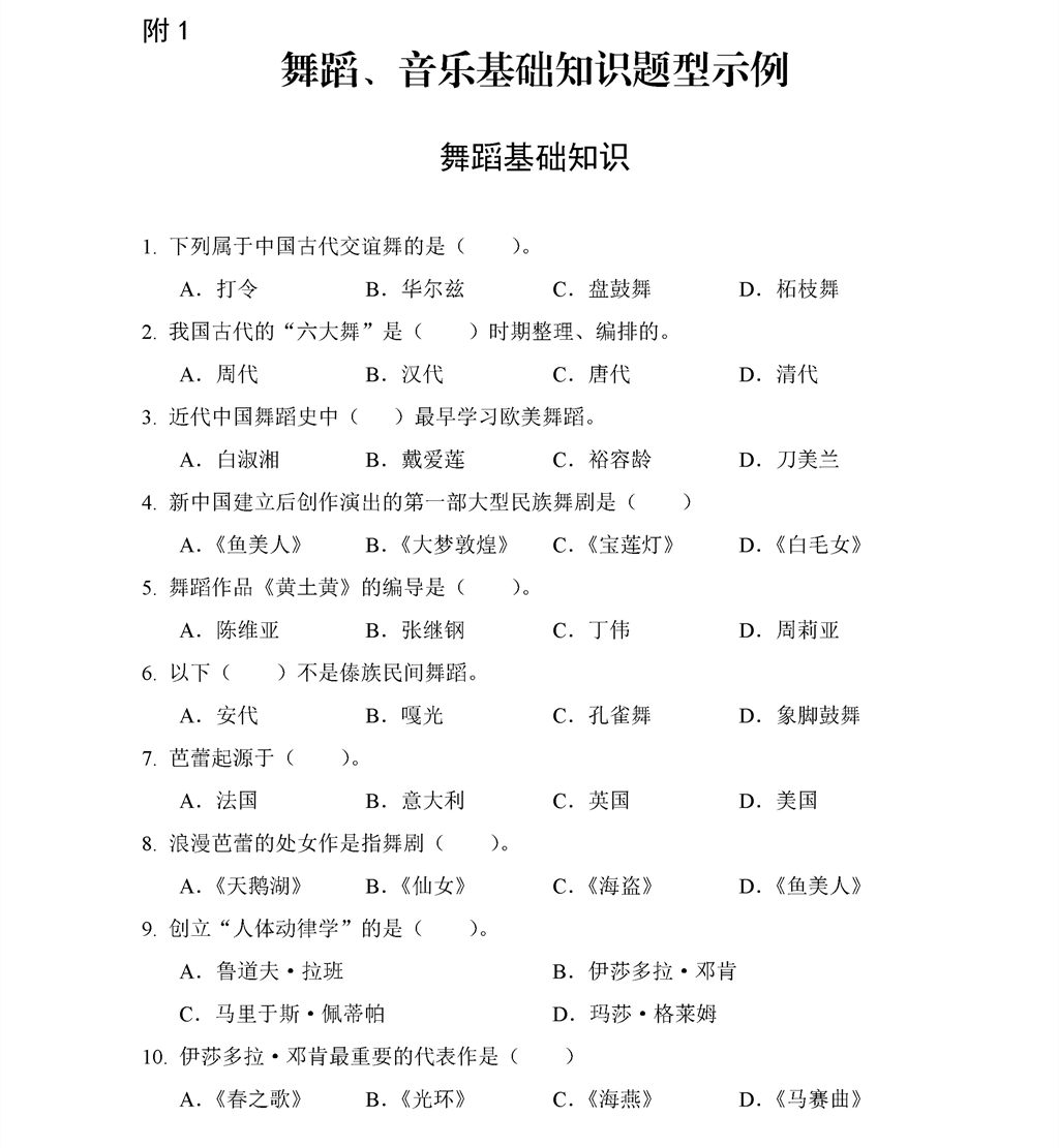 广东省2022年舞蹈术科统考舞蹈音乐基础知识题型