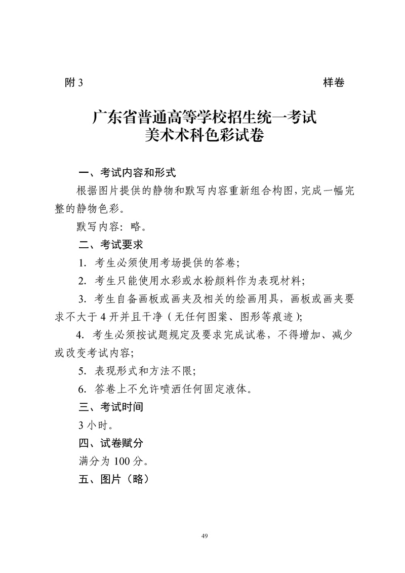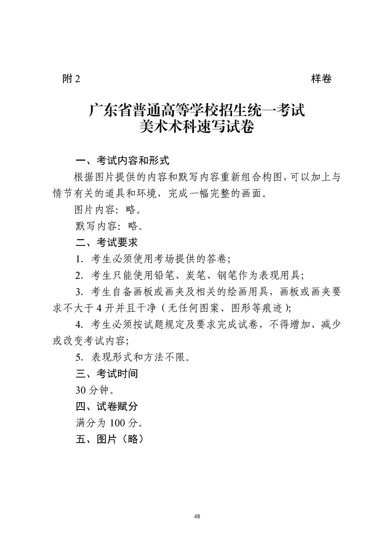 附件2 广东省2022年普通高等学校招生统一考试美术术科考试科目和要求