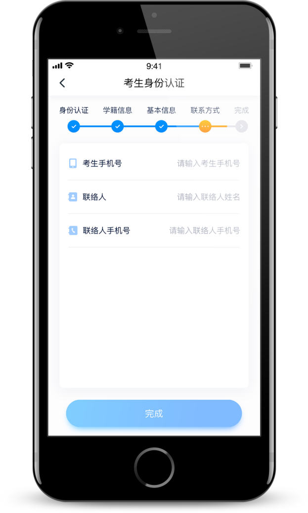 2、登录:进入登录页,使用手机号和密码即可登录,后续完成考生身份,也可以通过身份证号+密码登录。