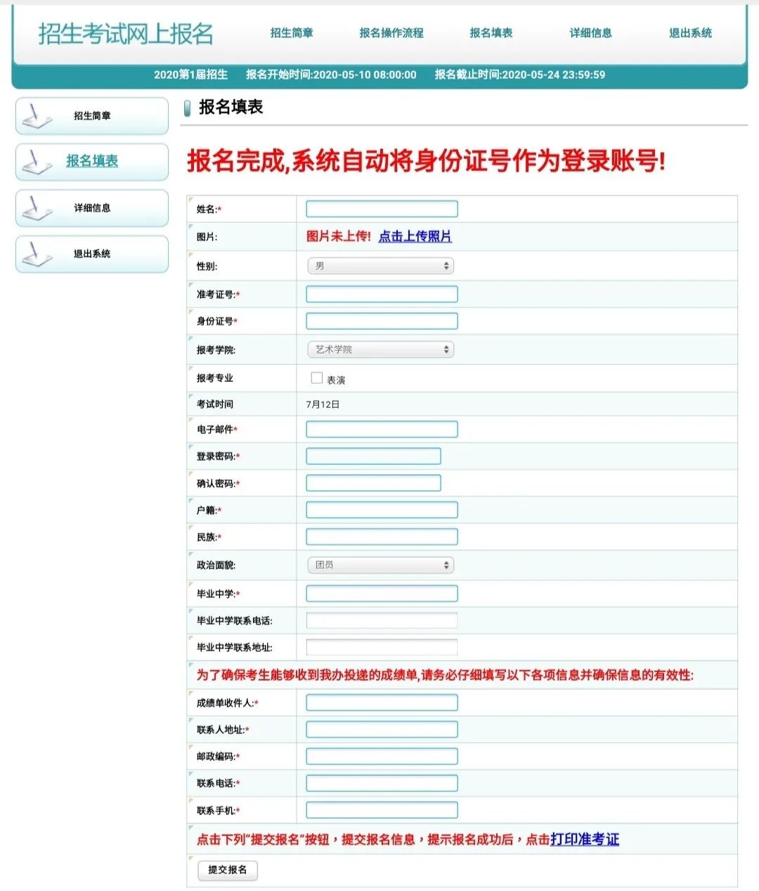 艺术校考考试时间:2020年7月12日