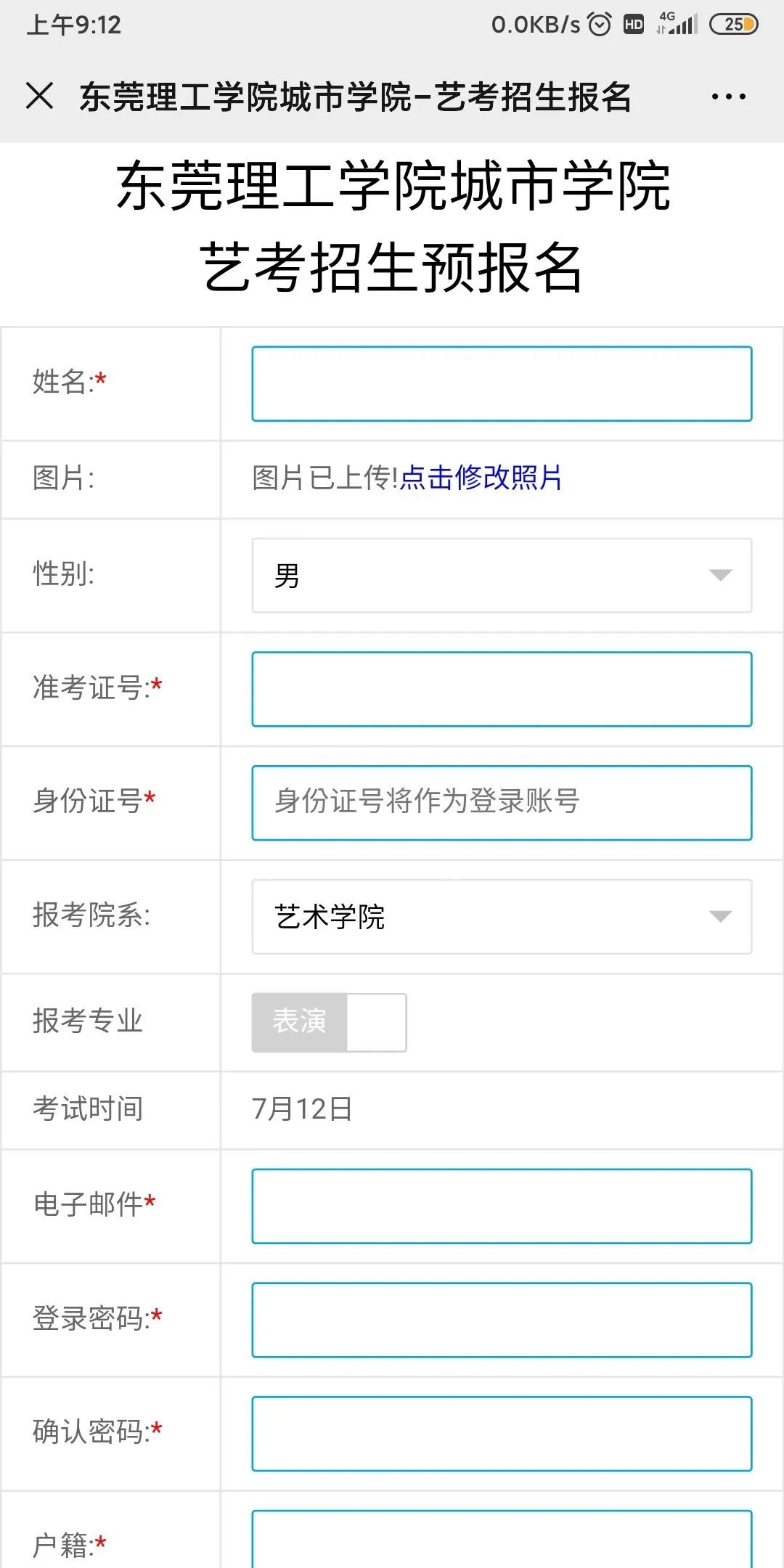 扫描后,进入填报页面