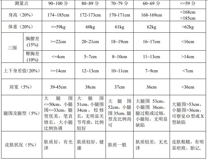 附:形体测量评分细则