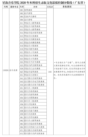 星海音乐学院2021年本科招生考试计划及合格分数线