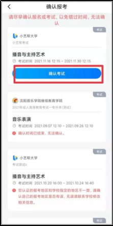 1月9日0:00前报名成功的学生,可在1月9日下午15:00后登录小艺帮APP,在【我的】—【确认报考】页面里确认考试,并可进行模拟考和正式考。