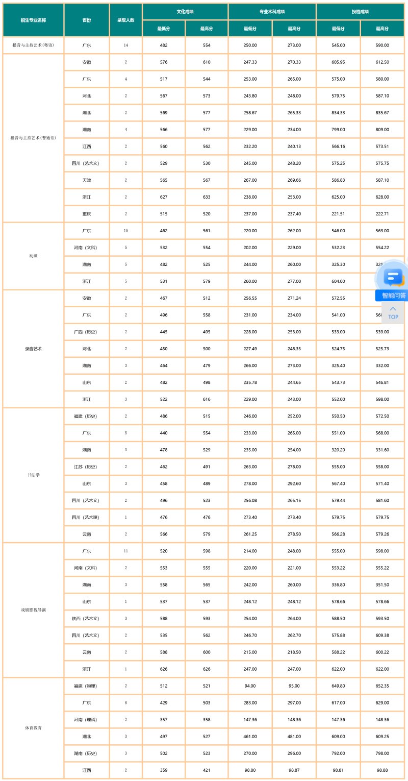 暨南大学2024年艺术类、体育类专业录取情况统计表