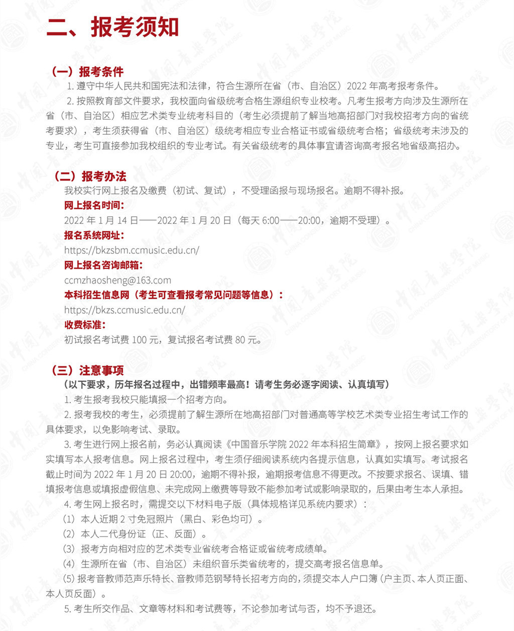 中国音乐学院2022年招生简章,中国音乐学院于1964 年建立,素有“中国音乐家的摇篮”“中国音乐的殿堂”的美誉。学校坚持党的领导,坚持社会主义办学方向,以国学为根基,独具中国音乐教育和研究特色,培养中国音乐理论、中国音乐创作、中国音乐表演等专门人才