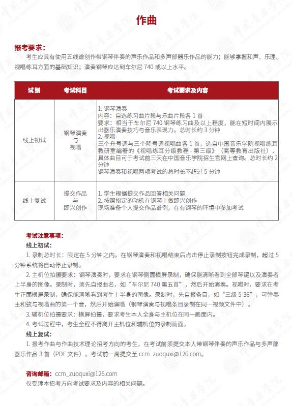 二、中国音乐学院作曲专业2022年考试内容