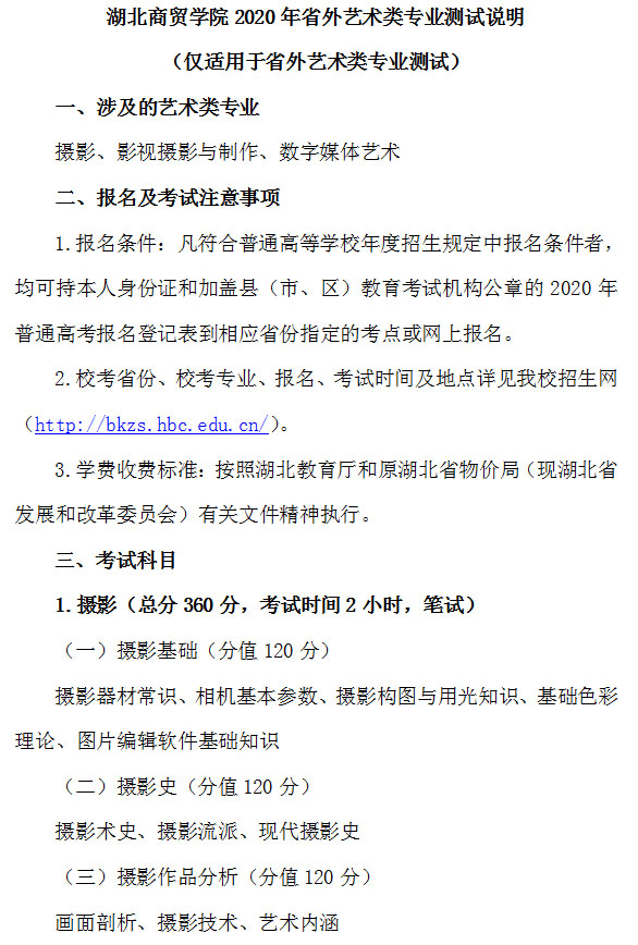 湖北商贸学院2020年艺术类招生简章