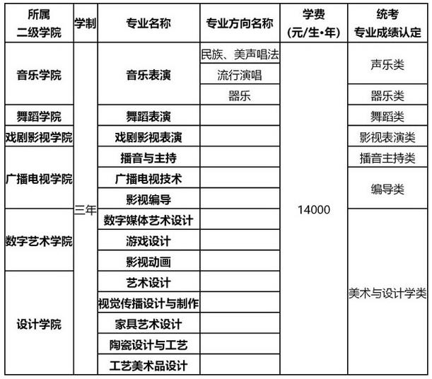 参加全国文化统考的文化类考生和艺术类考生根据自身高考成绩和艺术类专业成绩按要求填报本科、高职(专科)层次志愿;文化类考生可填报我校普通并轨本科和高职(专科)志愿;艺术类考生可填报艺术并轨本科和艺术高职(专科)志愿外,还可填报普通并轨本科和高职(专科)志愿。