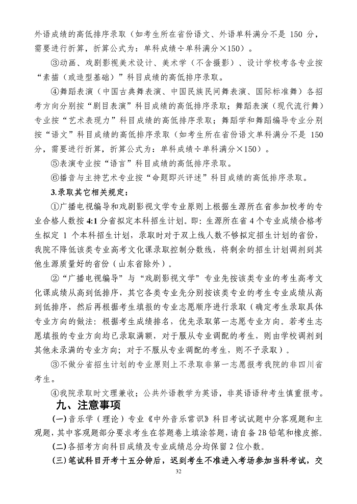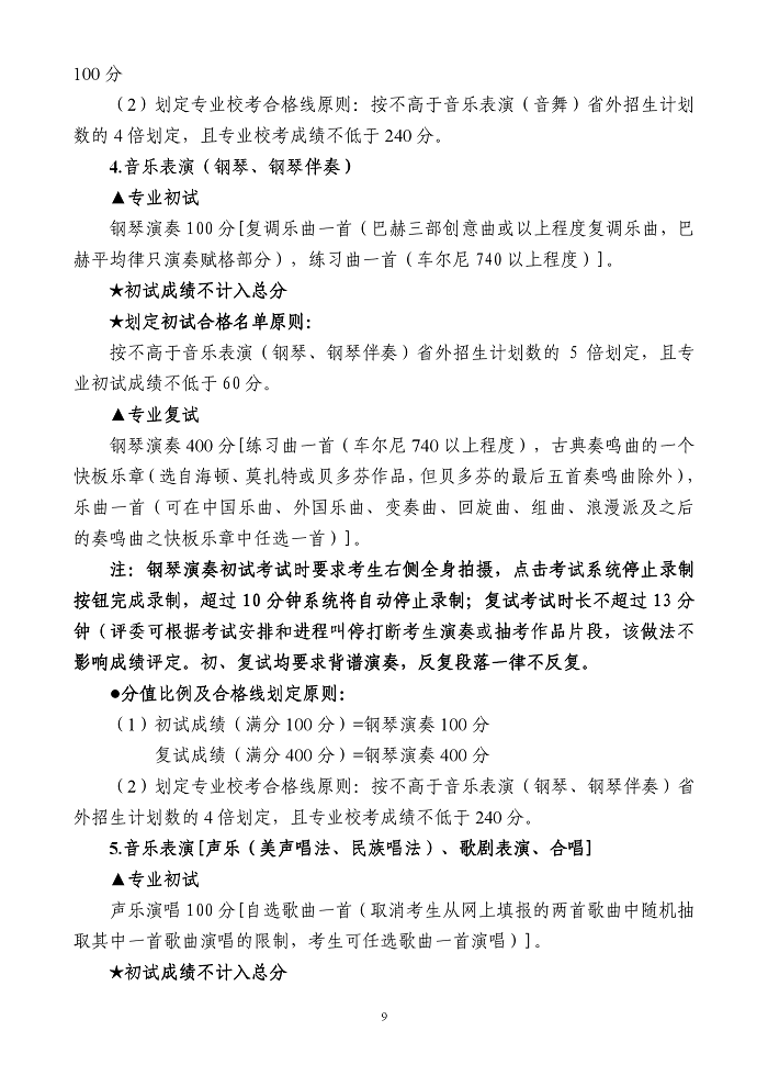 四川音乐学院2020年省外本科招生简章(调整版)