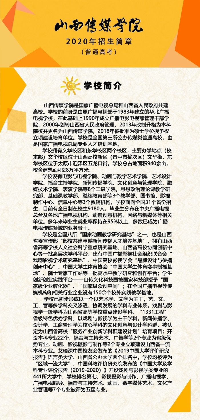 山西传媒学院2020年招生简章