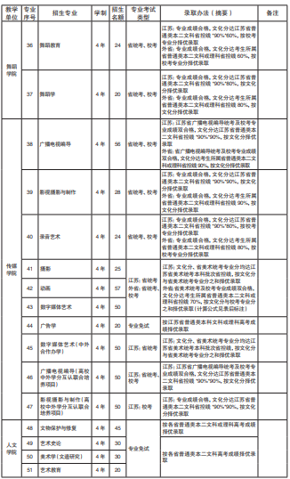 5、高等职业教育学院各专业只面向江苏省招收对口单招考生。另数字媒体 艺术(中外合作办学)、广播电视编导(高校中外学分互认联合培养项目)、影 视摄影与制作(高校中外学分互认联合培养项目)、工艺美术(与苏工艺联合培 养 4+0 项目)专业只招收江苏省艺术类考生,其他在艺术类批次录取的专业均面 向全国招生。