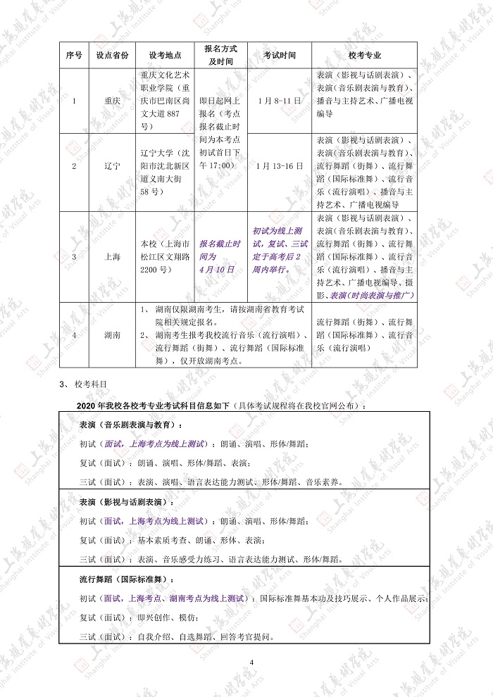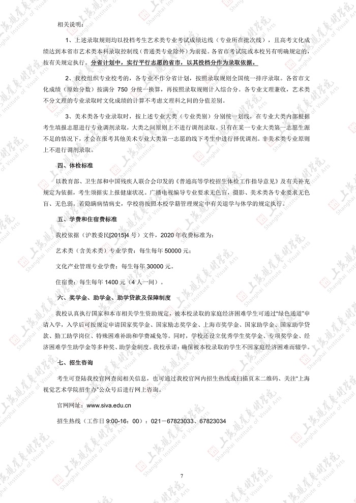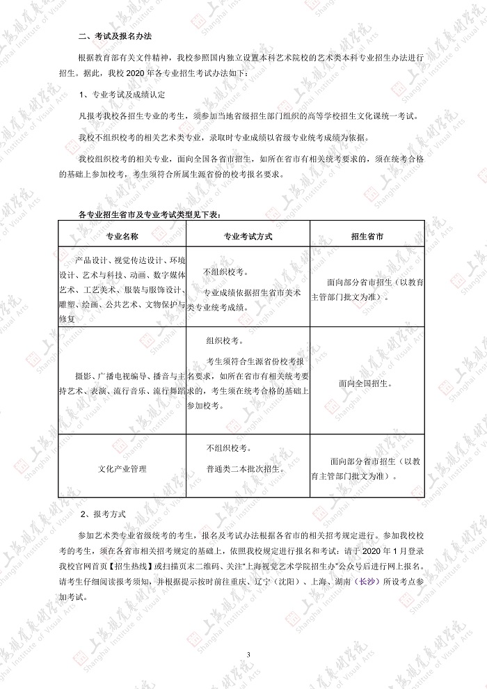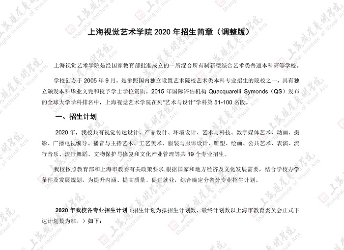 上海视觉艺术学院2020招生简章(调整版)