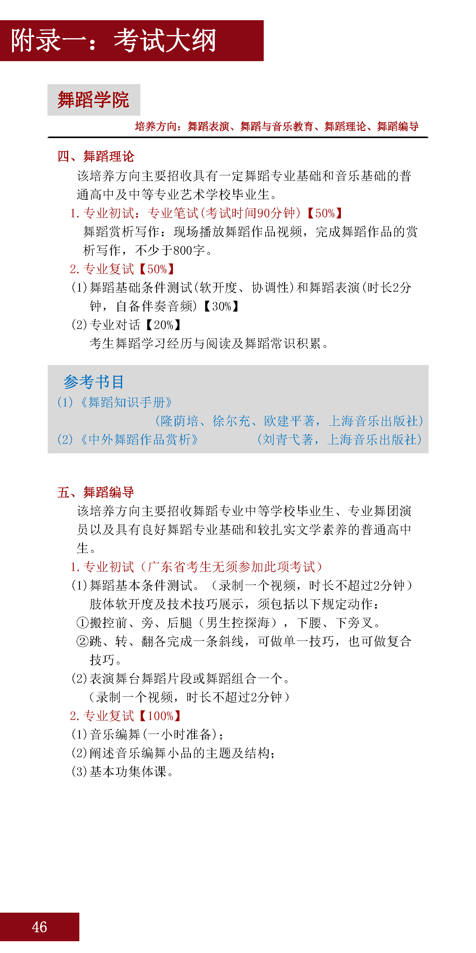 星海音乐学院2020年招生舞蹈专业方向和考试内容