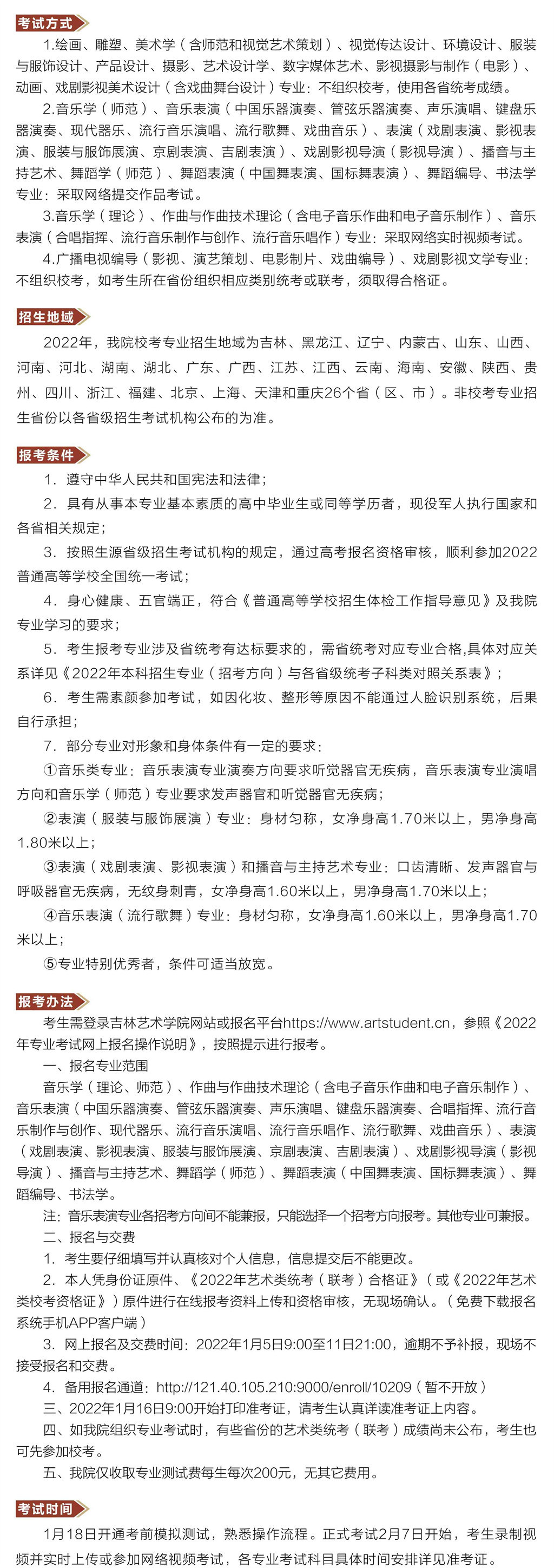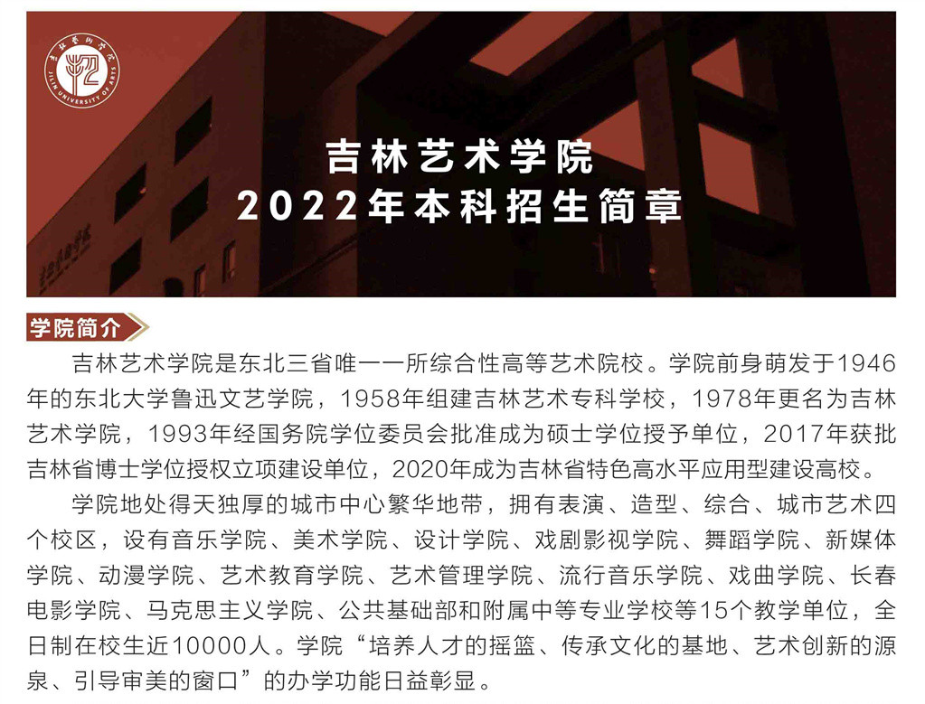 吉林艺术学院 2022年本科招生简章