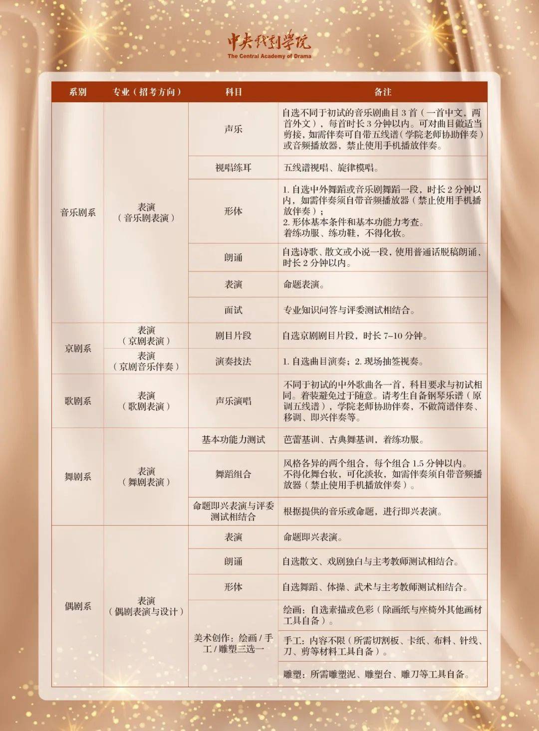 来源:2022年中央戏剧学院招生简章 | 作者:2022年中央戏剧学院招生简章 | 发布时间: 2022-01-12 | 24860 次浏览 | 分享到: