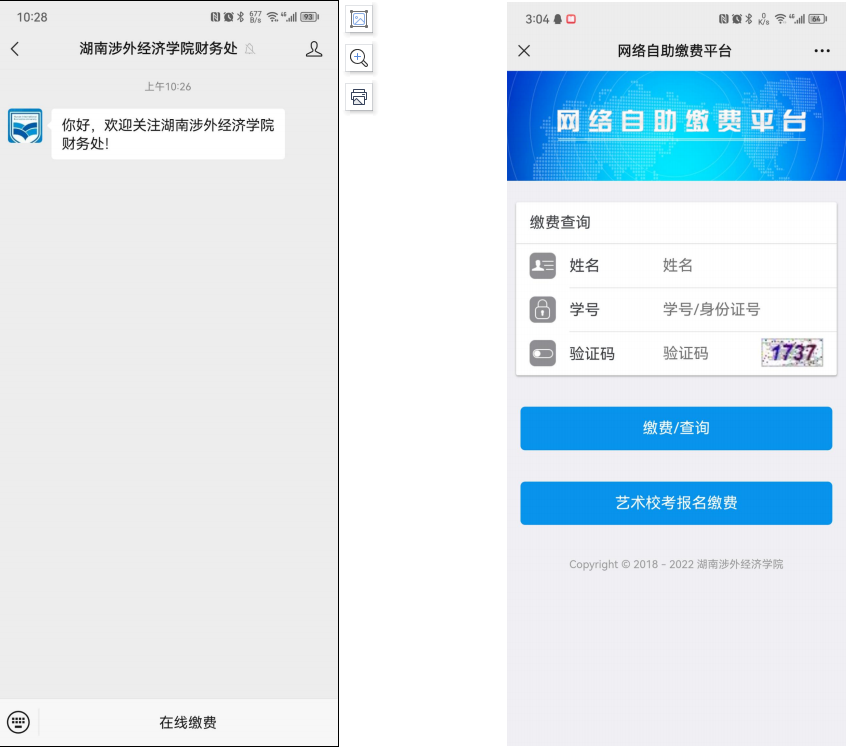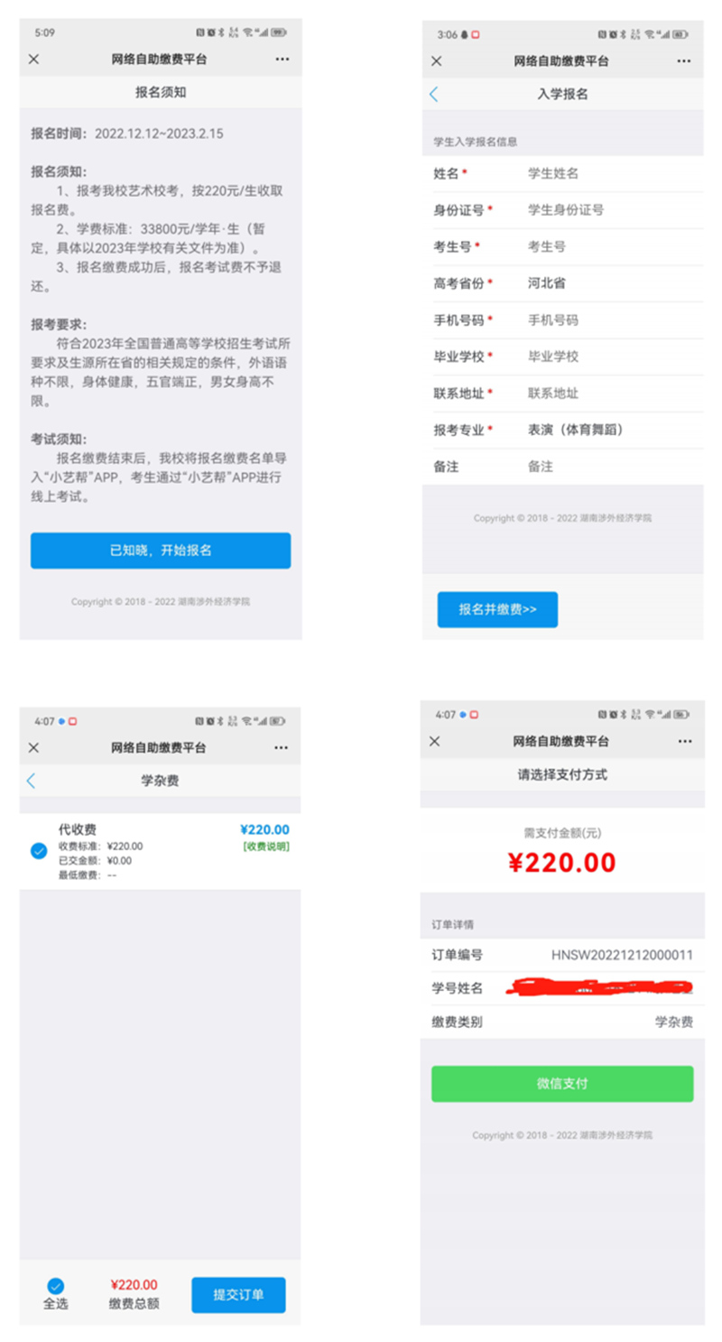 1报名及缴费方式:手机查询微信公众号“湖南涉外经济学院财务处”进行报名、缴费。