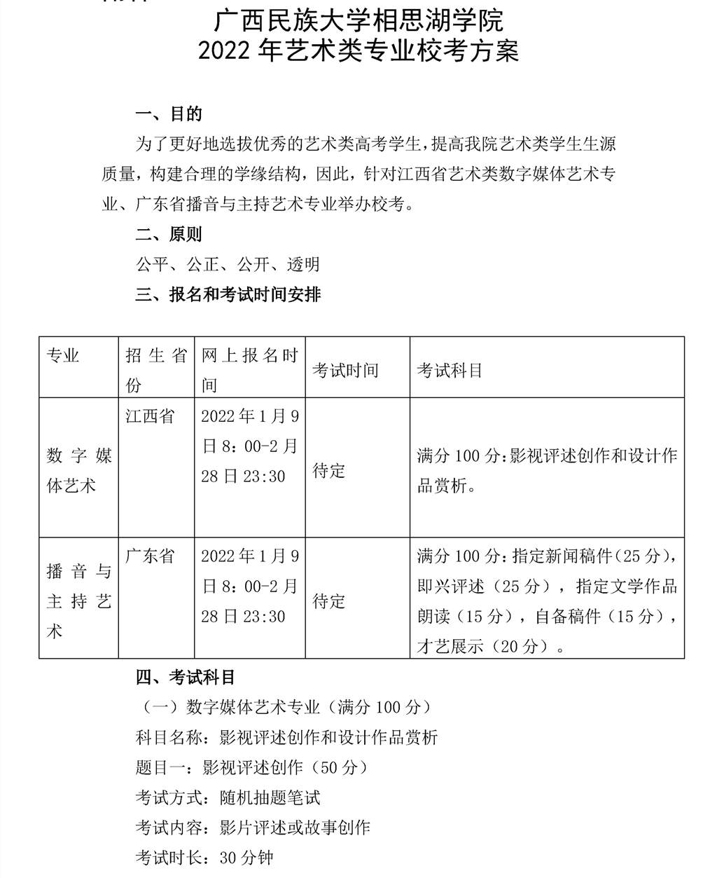 广西民族大学相思湖学院2022年艺术校考报名工作的通知,网上报名将于2022年1月9日8:00开始,至2月28日 23:30结束