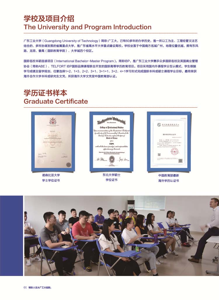 2021年广东工业大学国际名校本科本硕专业招生简章