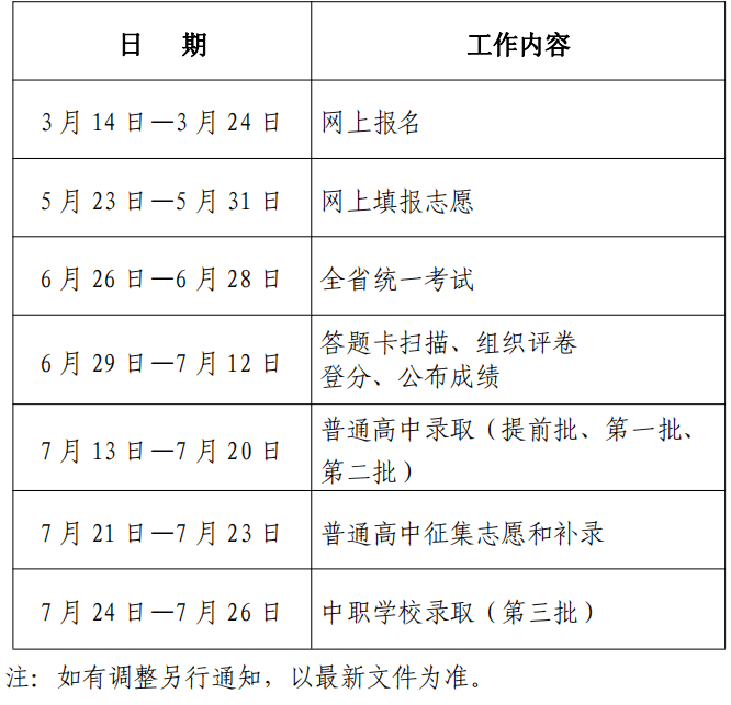 佛山市2022年初中学业水平考试时间安排