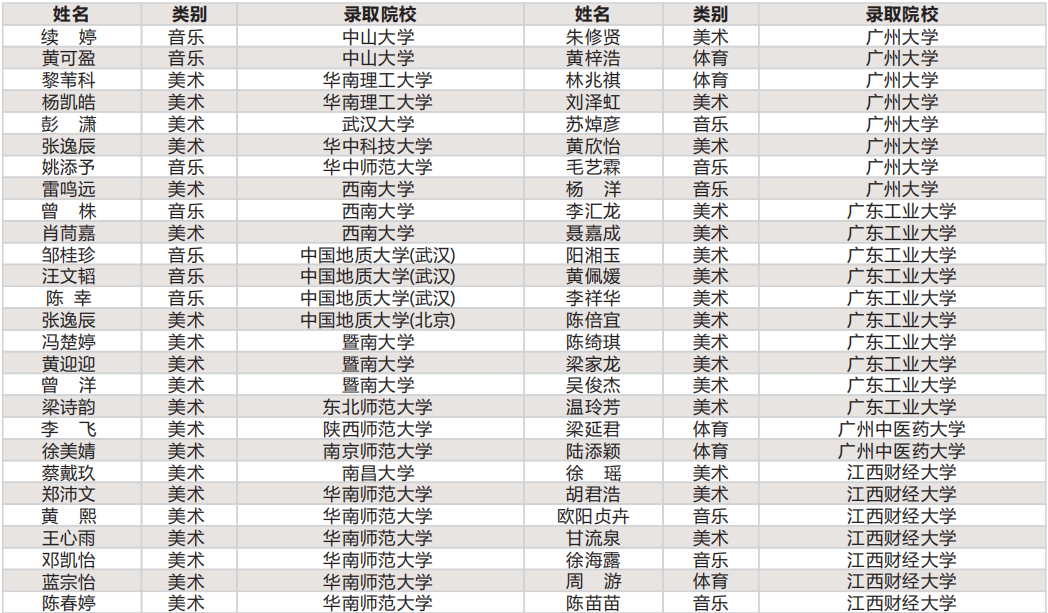 近三年高考体艺生、传媒生被重点本科院校